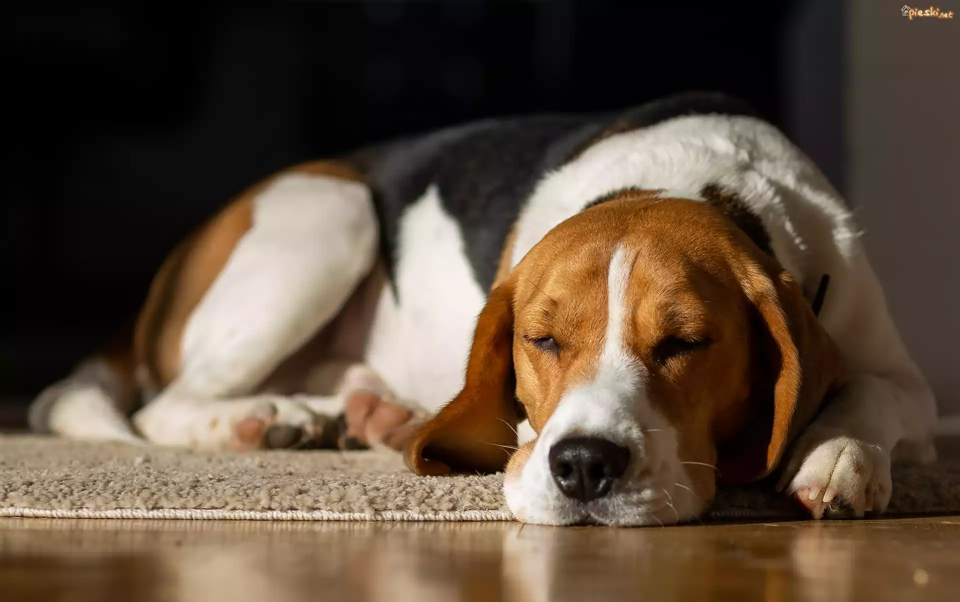 Pies Śpiący, Pies, Beagle, Dywan