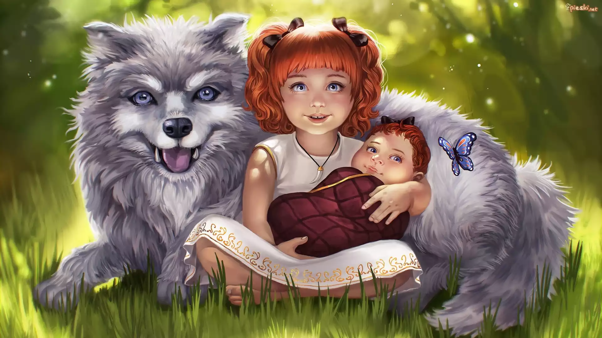 Dzieci, Pies, Motyl, Grafika 2D