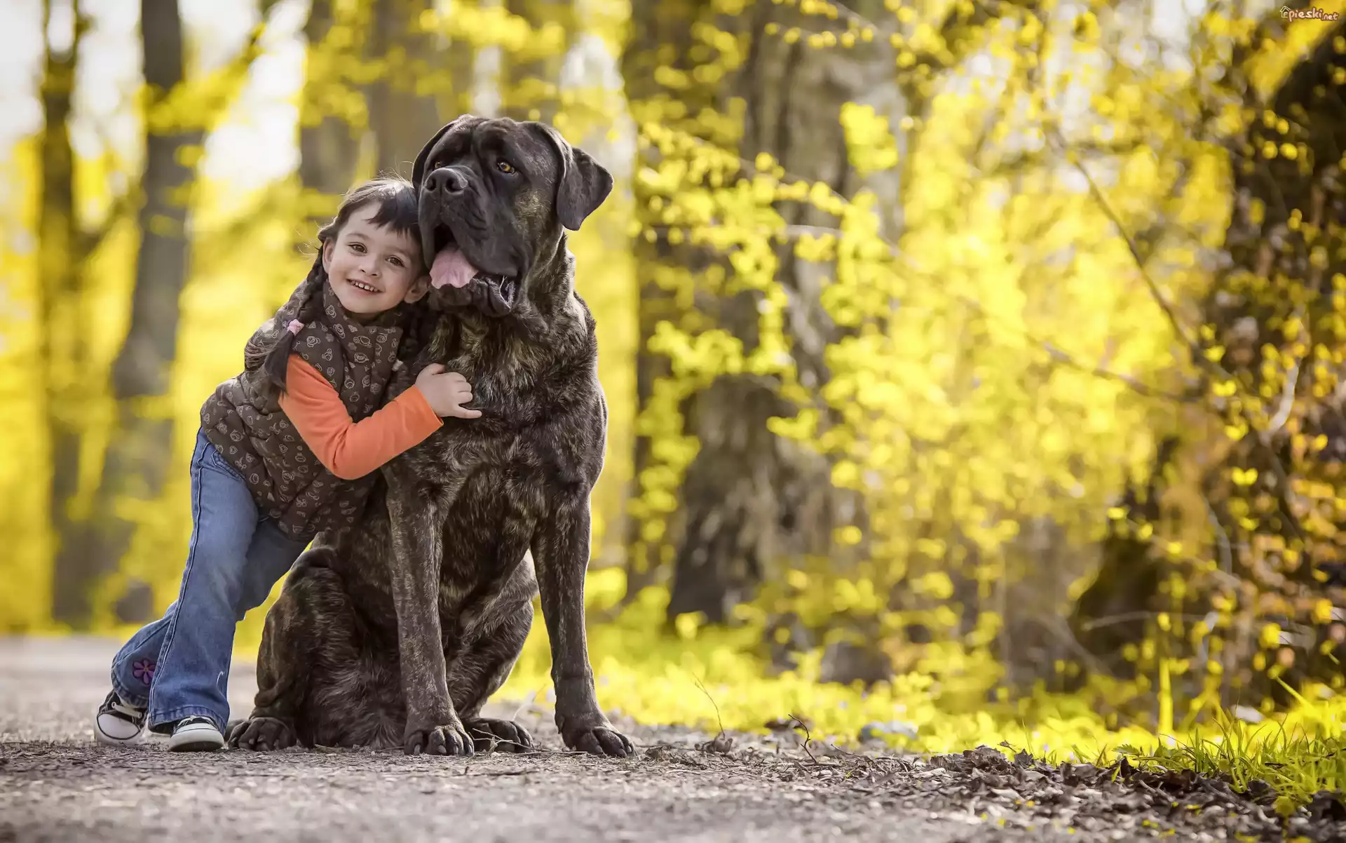 Pies Dziecko, Dziewczynka, Pies, Pręgowany, Bullmastiff, Alejka