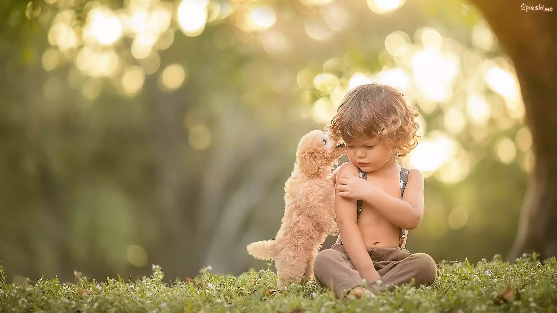 Dziecko, Chłopczyk, Piesek, Szczeniak
