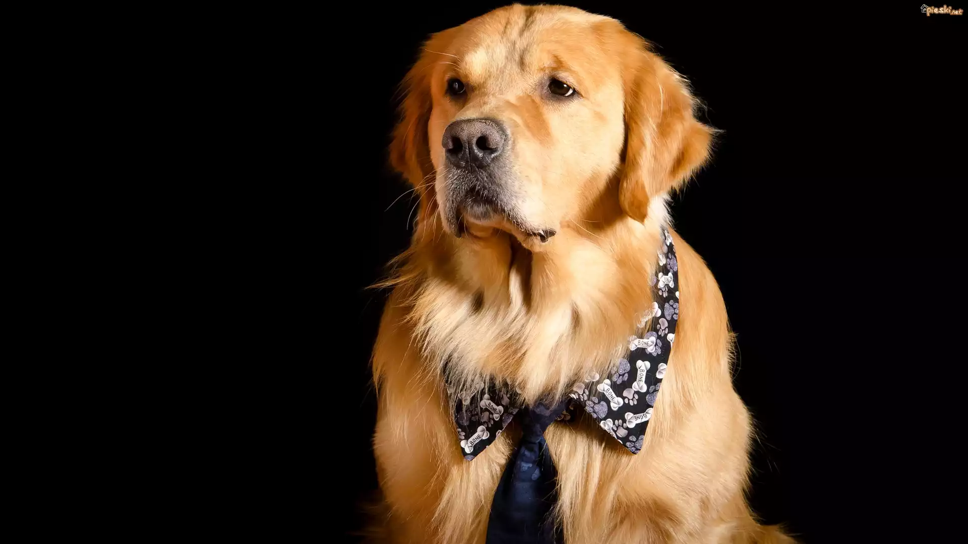 Pies Pies, Golden retriever, Krawat, Kołnierzyk, Ciemne, Tło