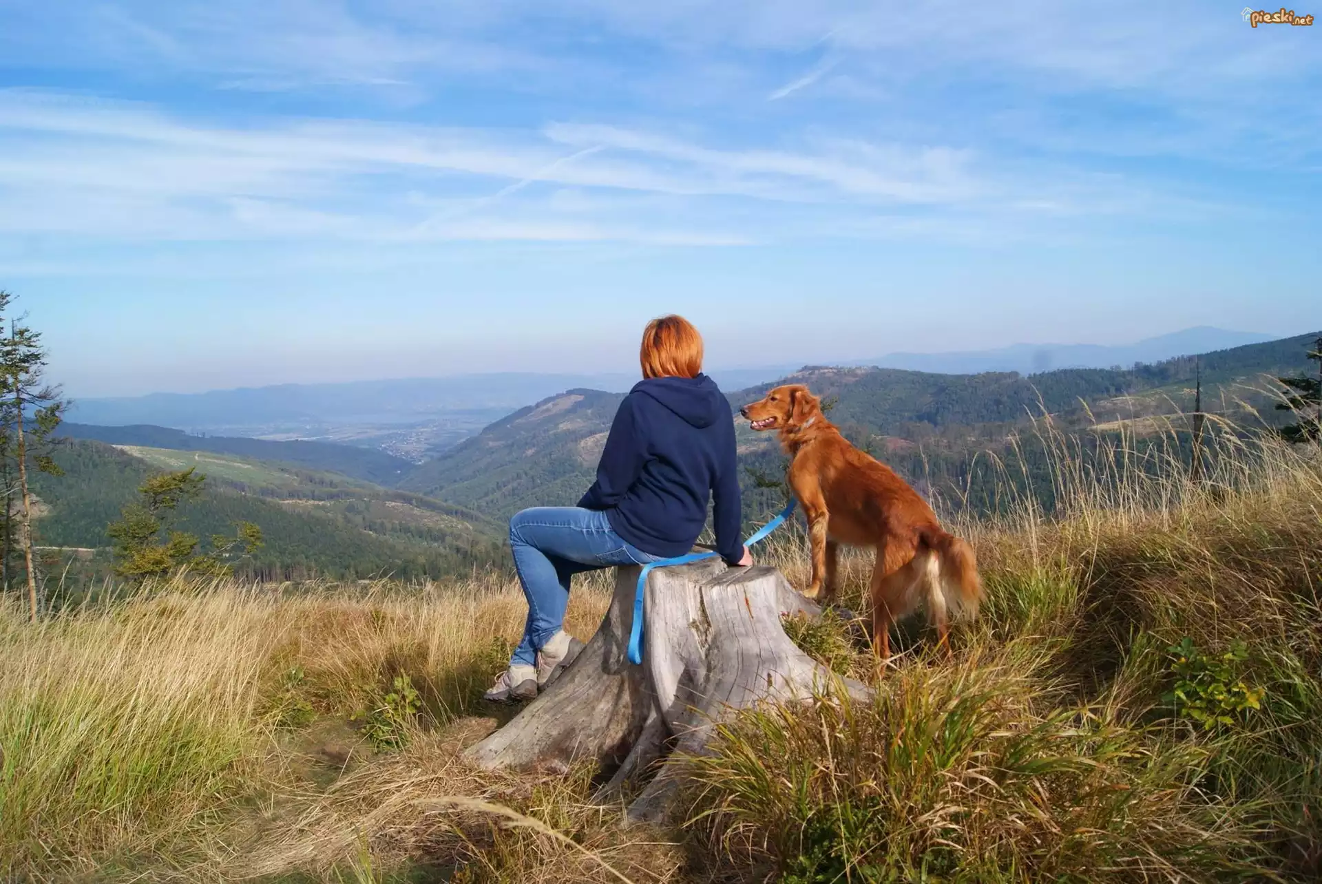 Pies Góry, Kobieta, Pies, Krajobraz