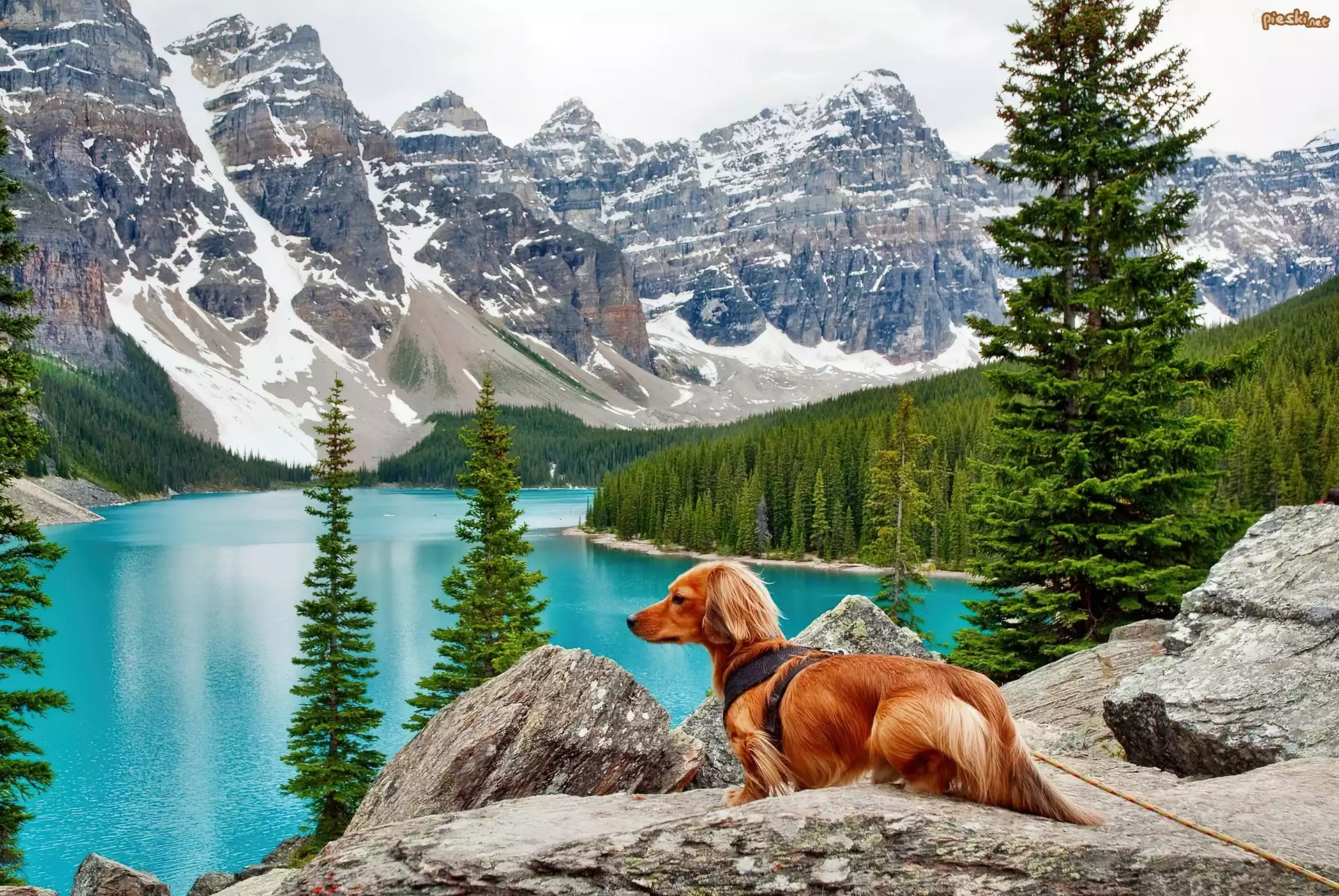 Pies Góry, Lasy, Jezioro, Skały, Pies