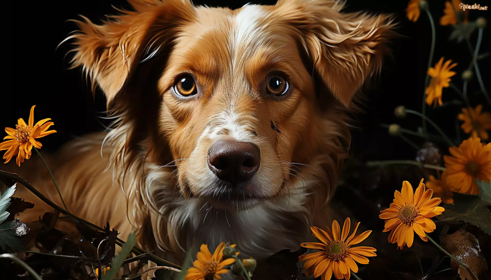Pies, Pomarańczowe, Kwiaty, Grafika