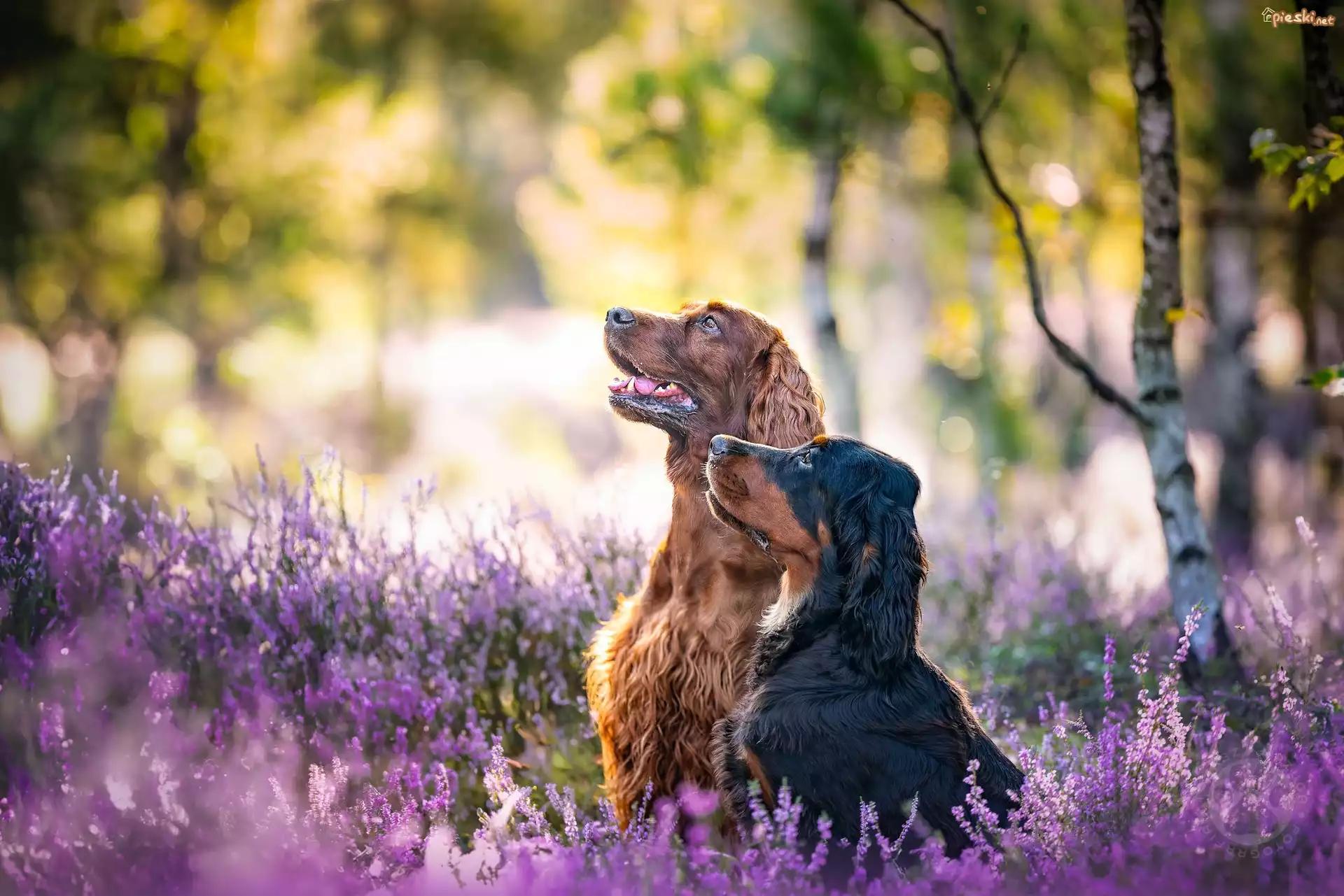 Dwa, Psy, Seter irlandzki, Seter szkocki, Wrzosy