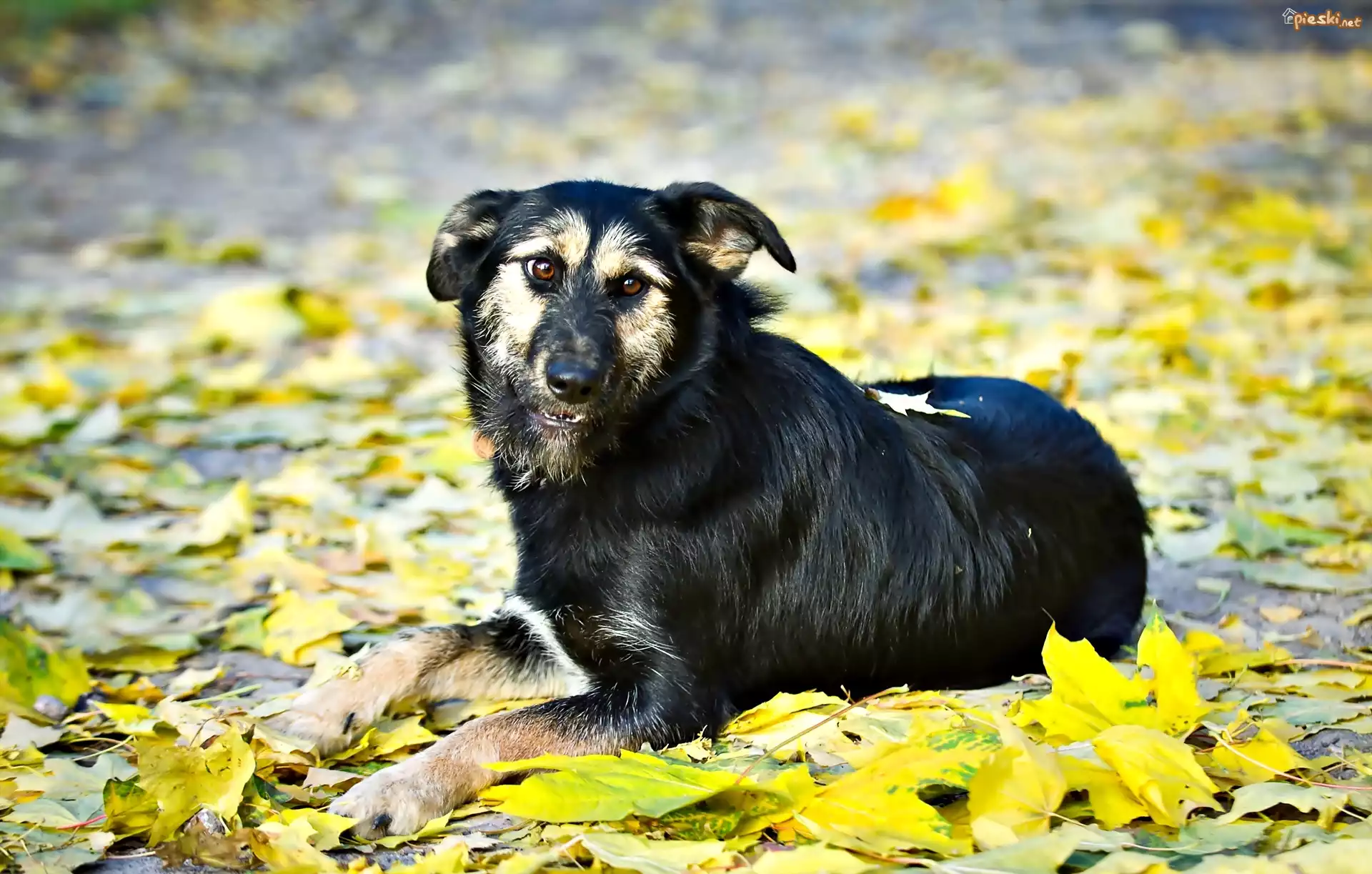 Pies Jesień, Zółte, Liście, Czarny, Pies