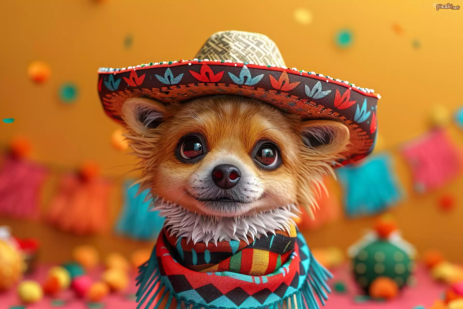 Pies Pies, Kapelusz, Kolorowa, Chustka, Grafika