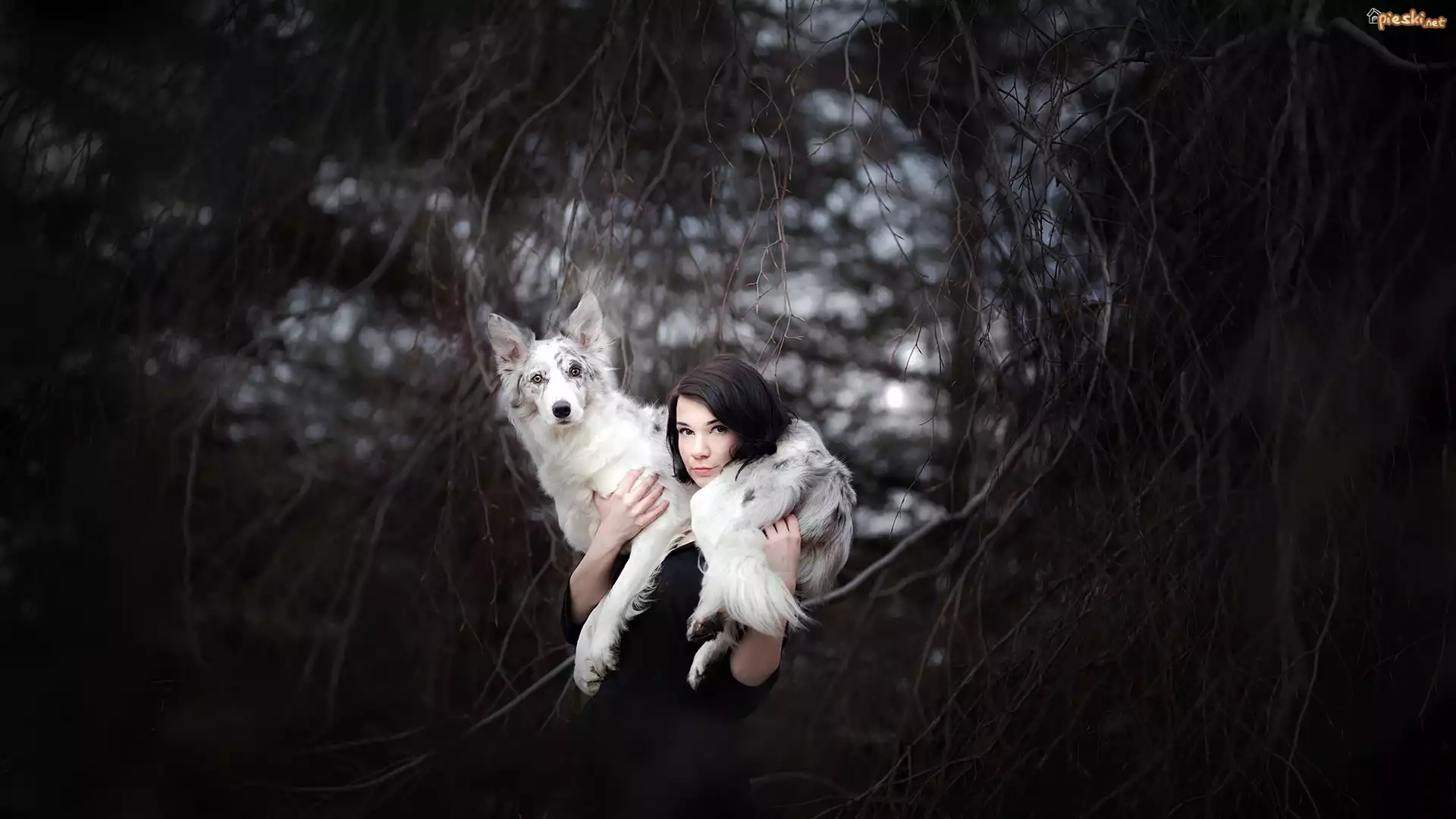 Pies Kobieta, Pies, Border collie, Gałęzie