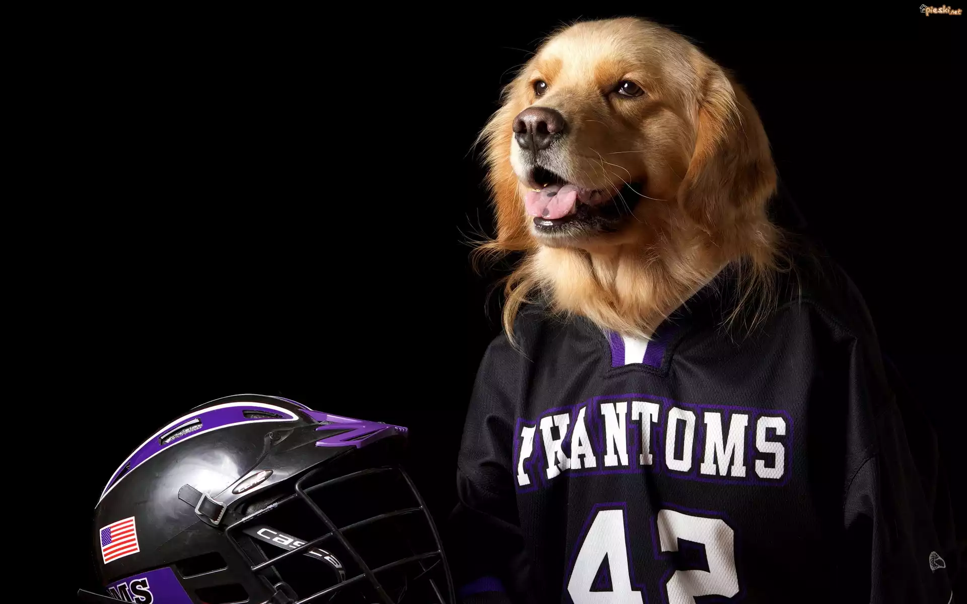 Pies Pies, Golden retriever, Koszulka, Kask