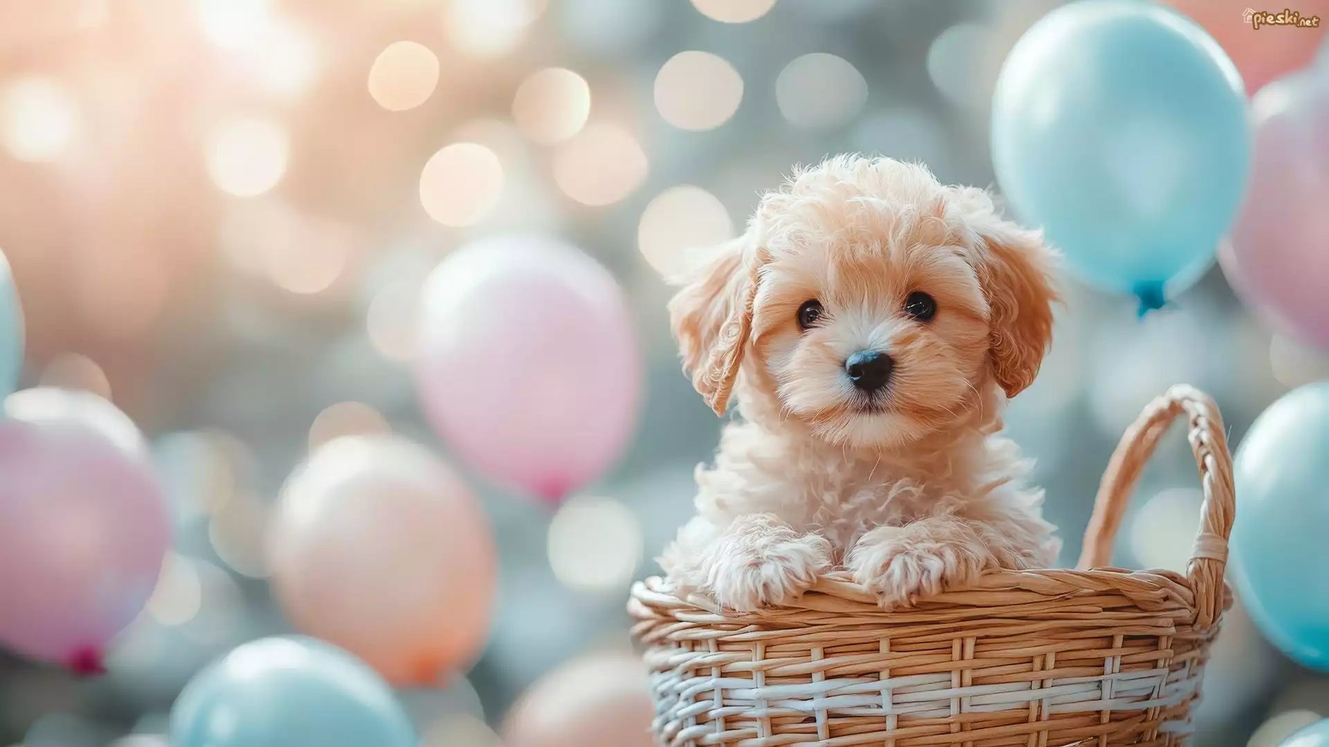Pies Jasnobrązowy, Pies, Szczeniak, Koszyk, Kolorowe, Balony