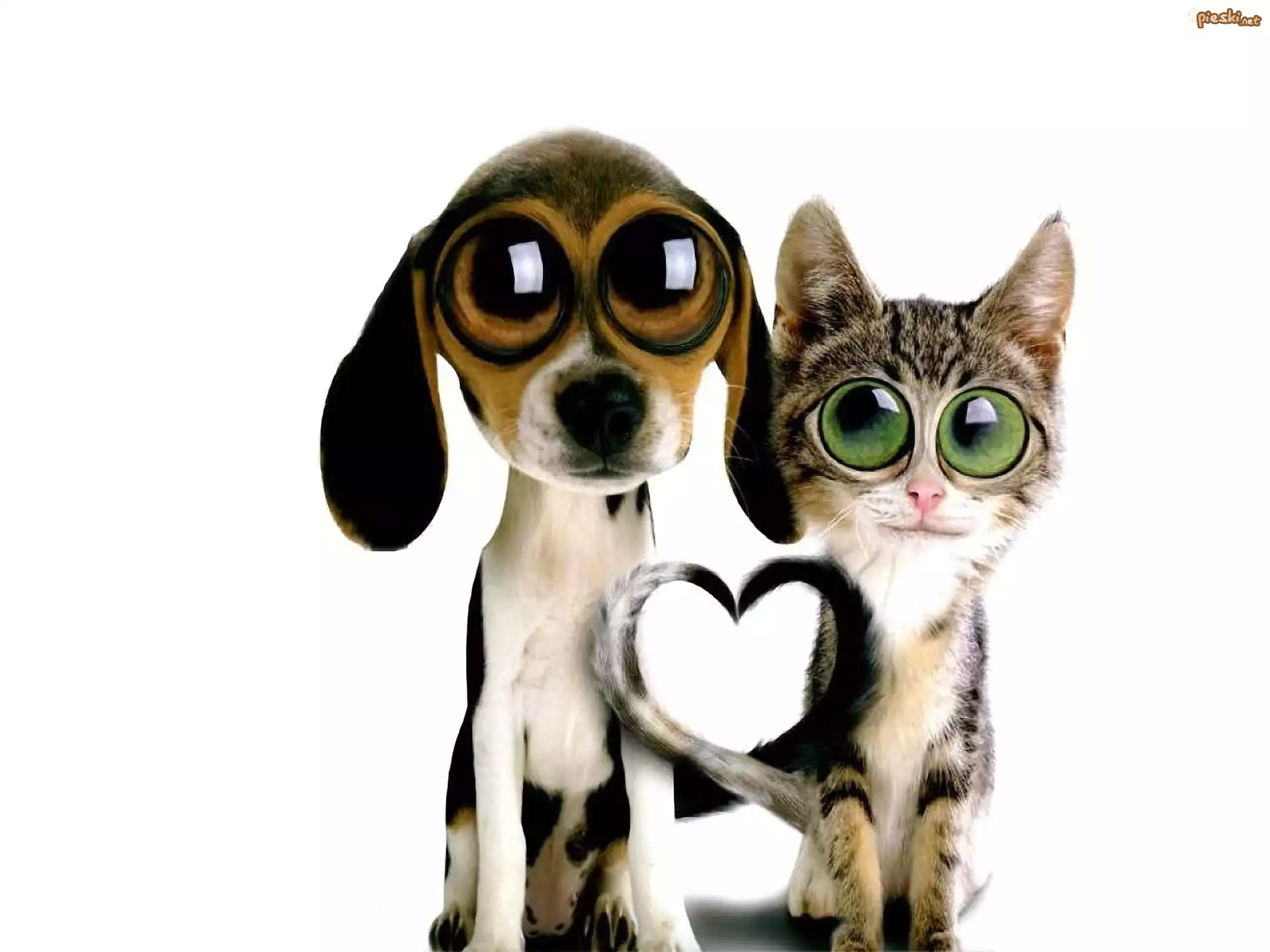 Kot, Pies, Duże, Oczy