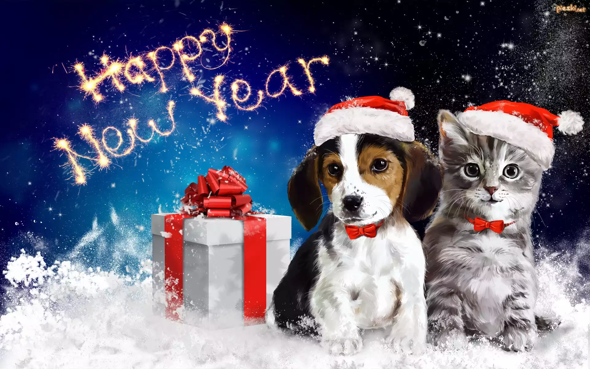 Pies Kotek, Piesek, Prezent, Świąteczne, Noworoczne