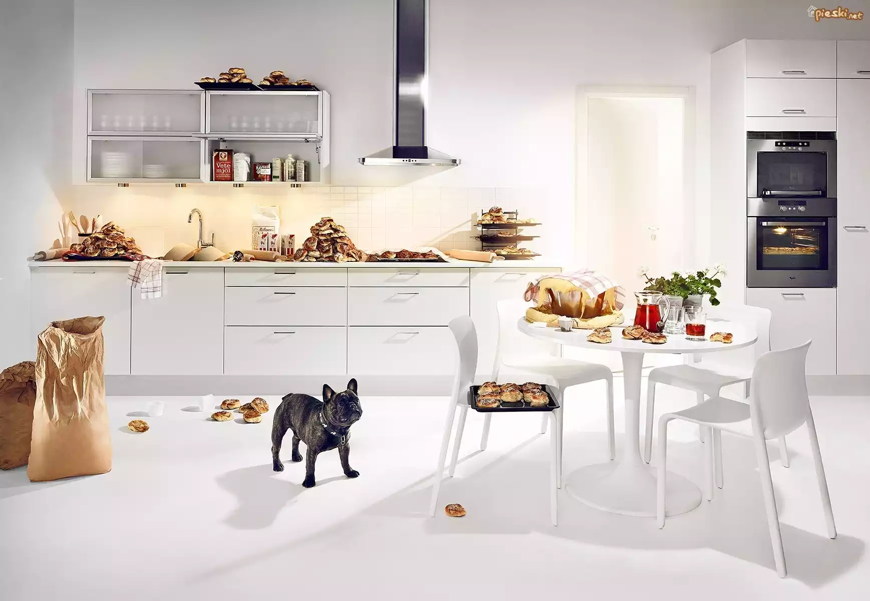 Pies Kuchnia, Pies, Słodkie, Bułeczki, Stół, Krzesła