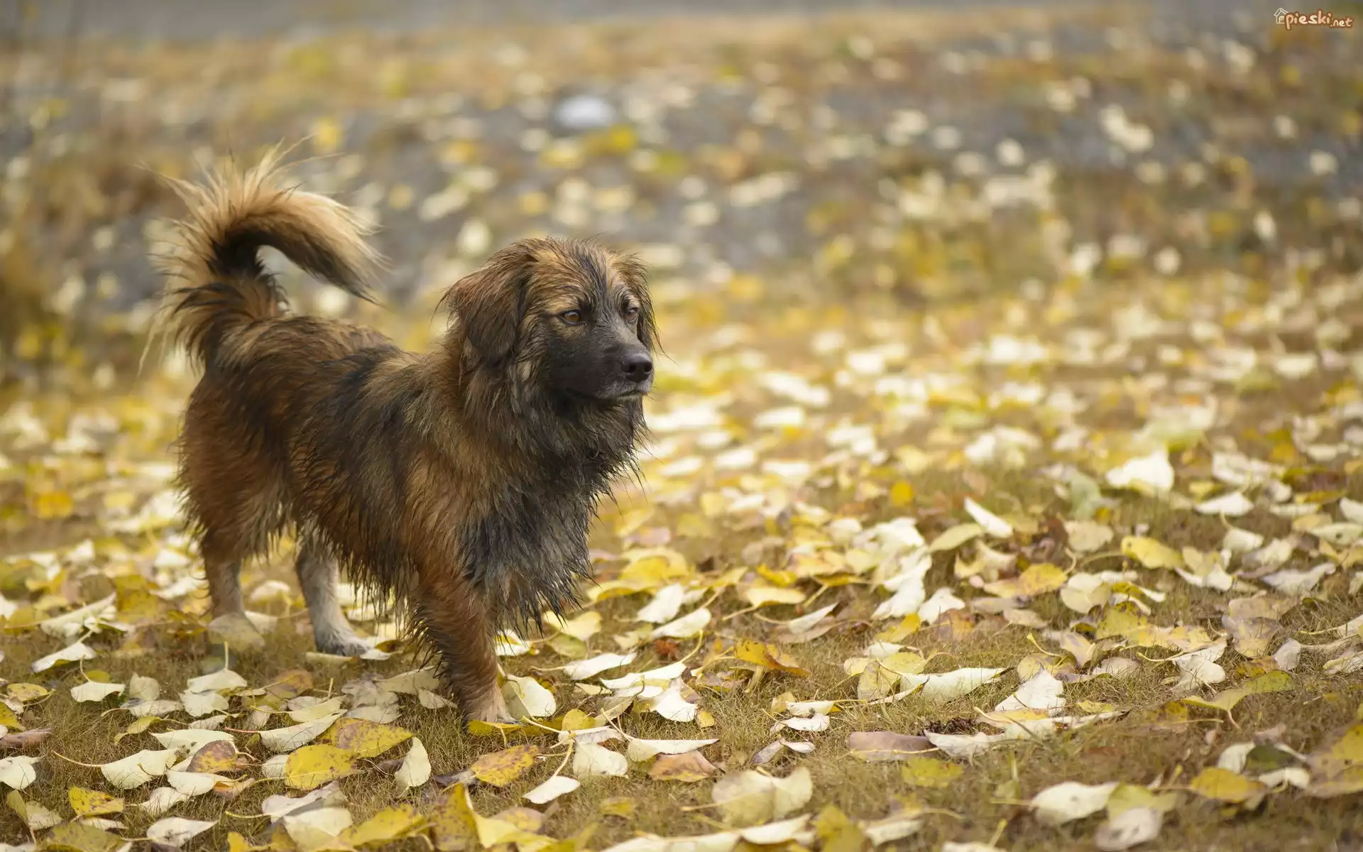 Kundelek, Łąka, Jesienne, Liście, Pies
