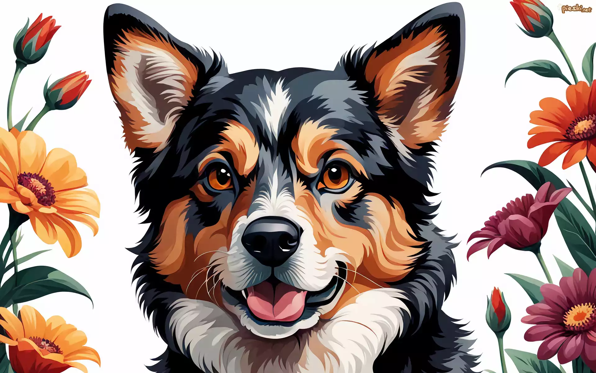 Pies Grafika, Pies, Kolorowe, Kwiaty