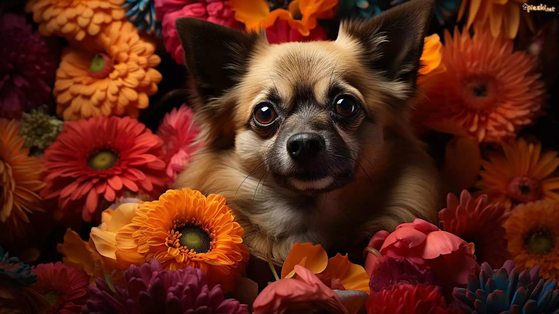 Pies Pies, Mordka, Pomarańczowe, Kwiaty