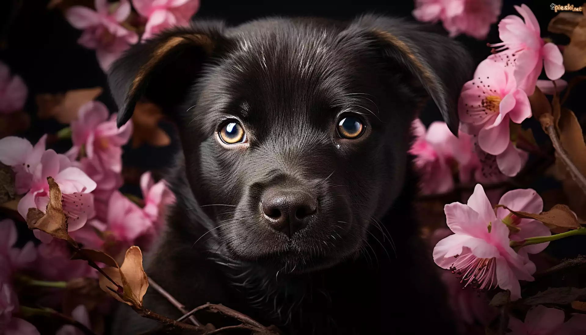 Pies Pies, Czarny, Szczeniak, Kwiaty