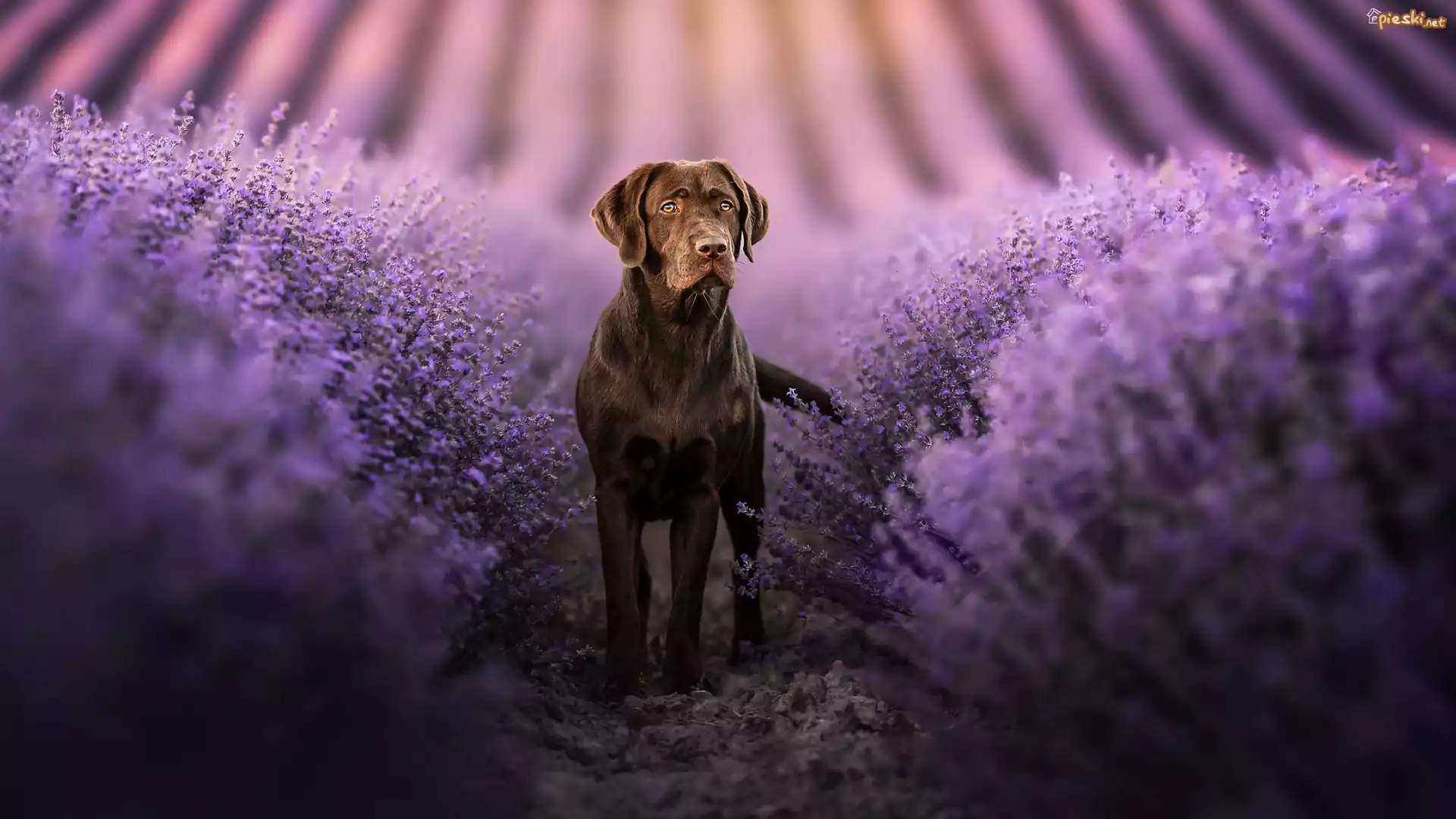 Pies Pies, Labrador retriever, Pole, Lawendy