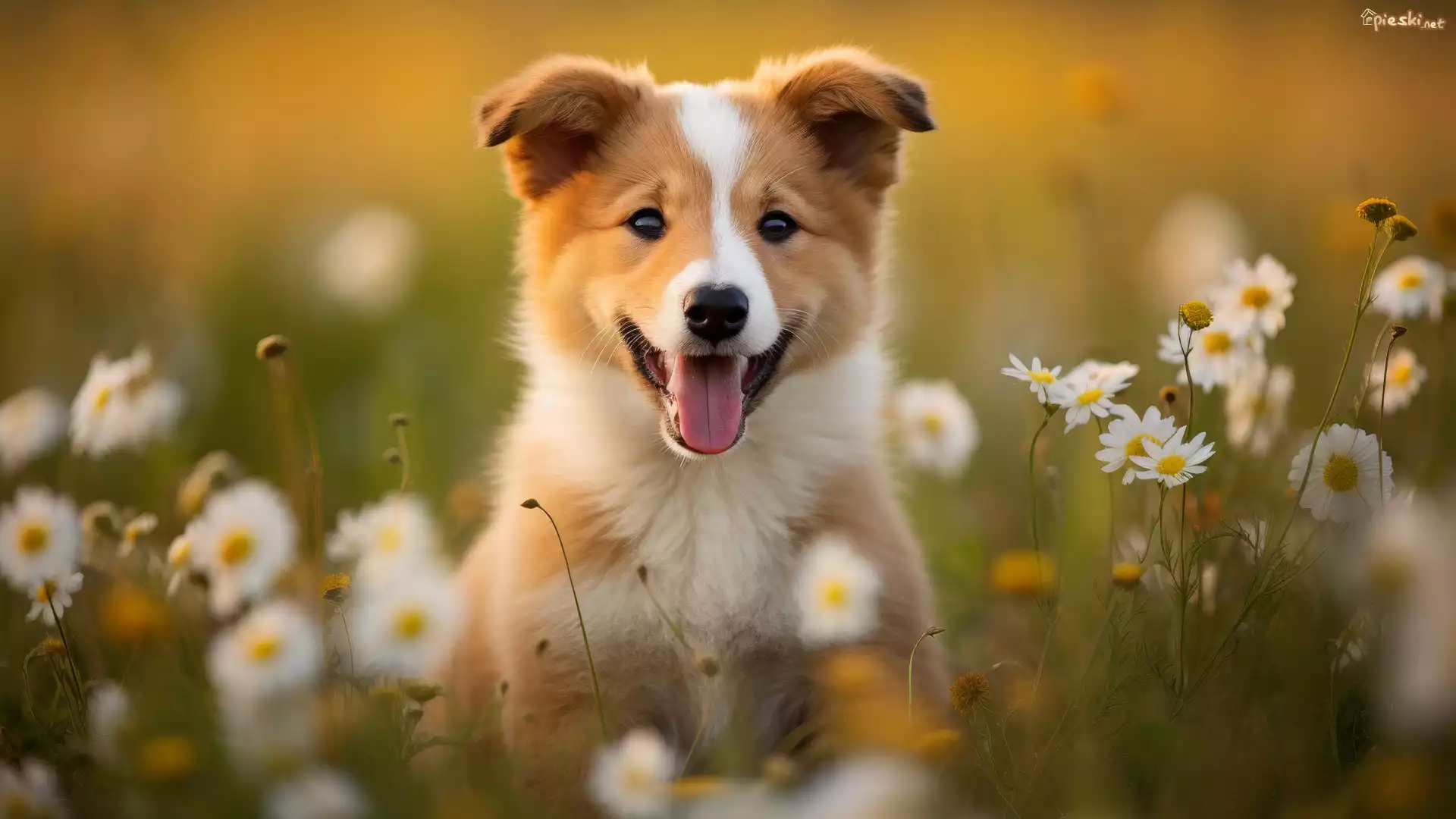 Pies Pies, Szczeniak, Kwiaty, Łąka