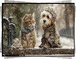 Pies, Kot, Ubranka, Ławka, Zima, Grafika AI