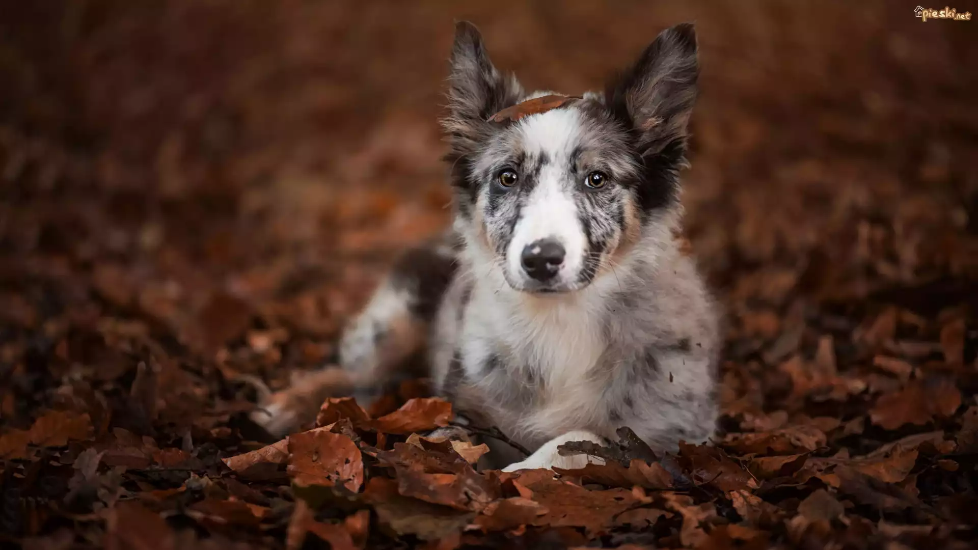 Pies Leżący, Border collie, Liście