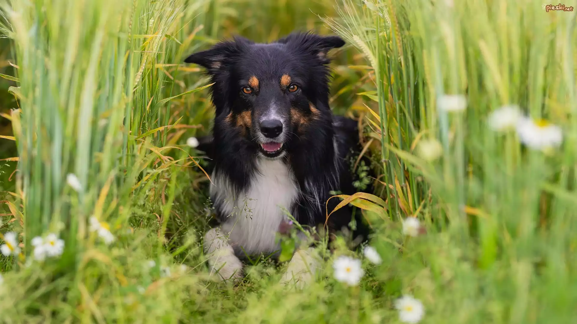 Pies Leżący, Pies, Border collie, Zboże