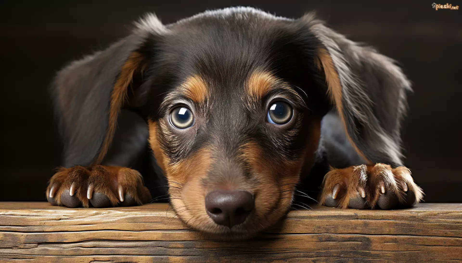 Pies Pies, Jamnik, Szczeniak, Leżący, Spojrzenie, Deska