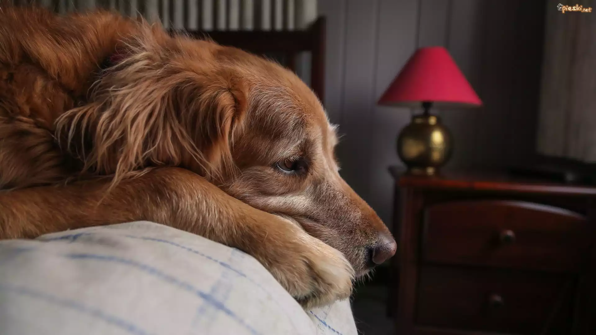 Leżący, Pies, Łóżko, Golden retriever