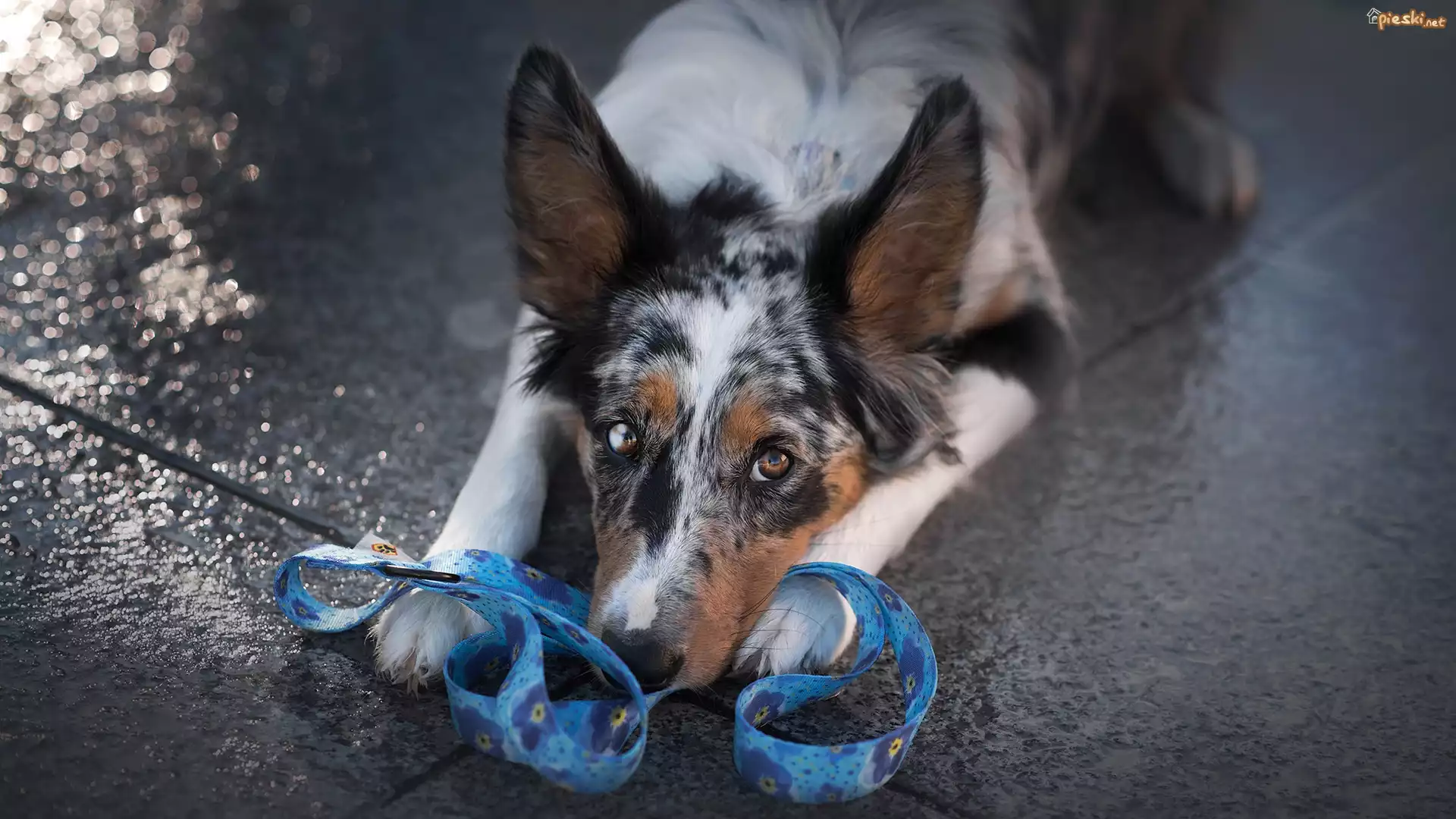 Pies Leżący, Pies, Border collie, Mordka, Smycz