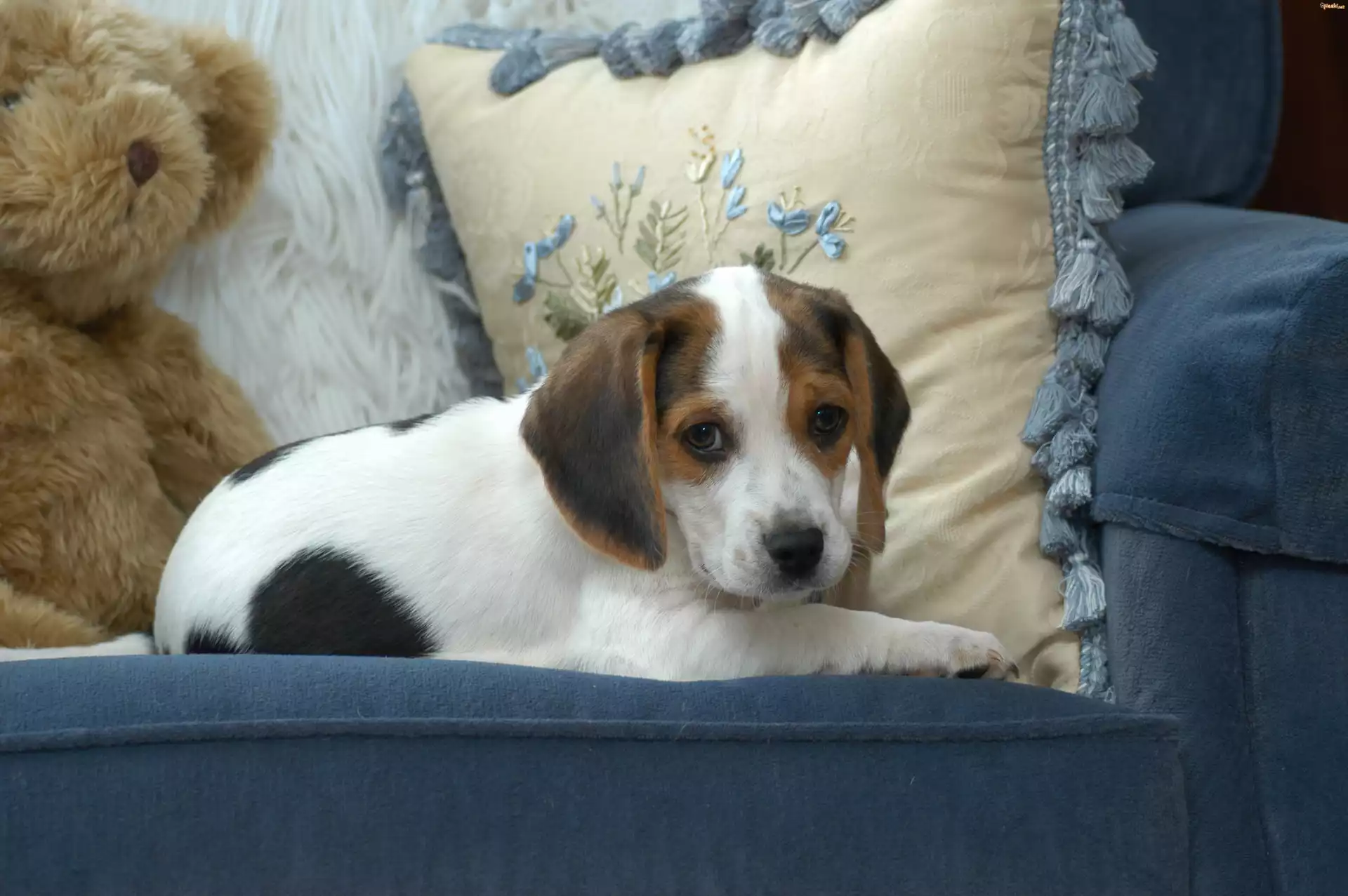 Pies Leżący, Pies, Kanapa, Poduszka, Pluszowy, Miś