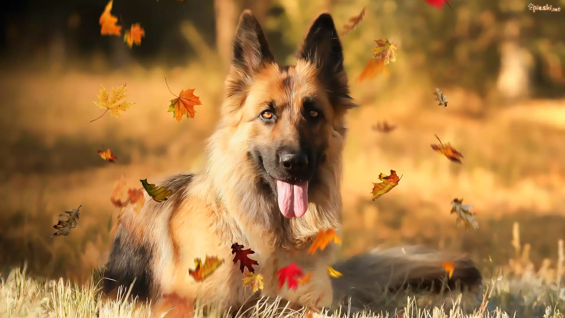 Liście, Owczarek niemiecki, Pies