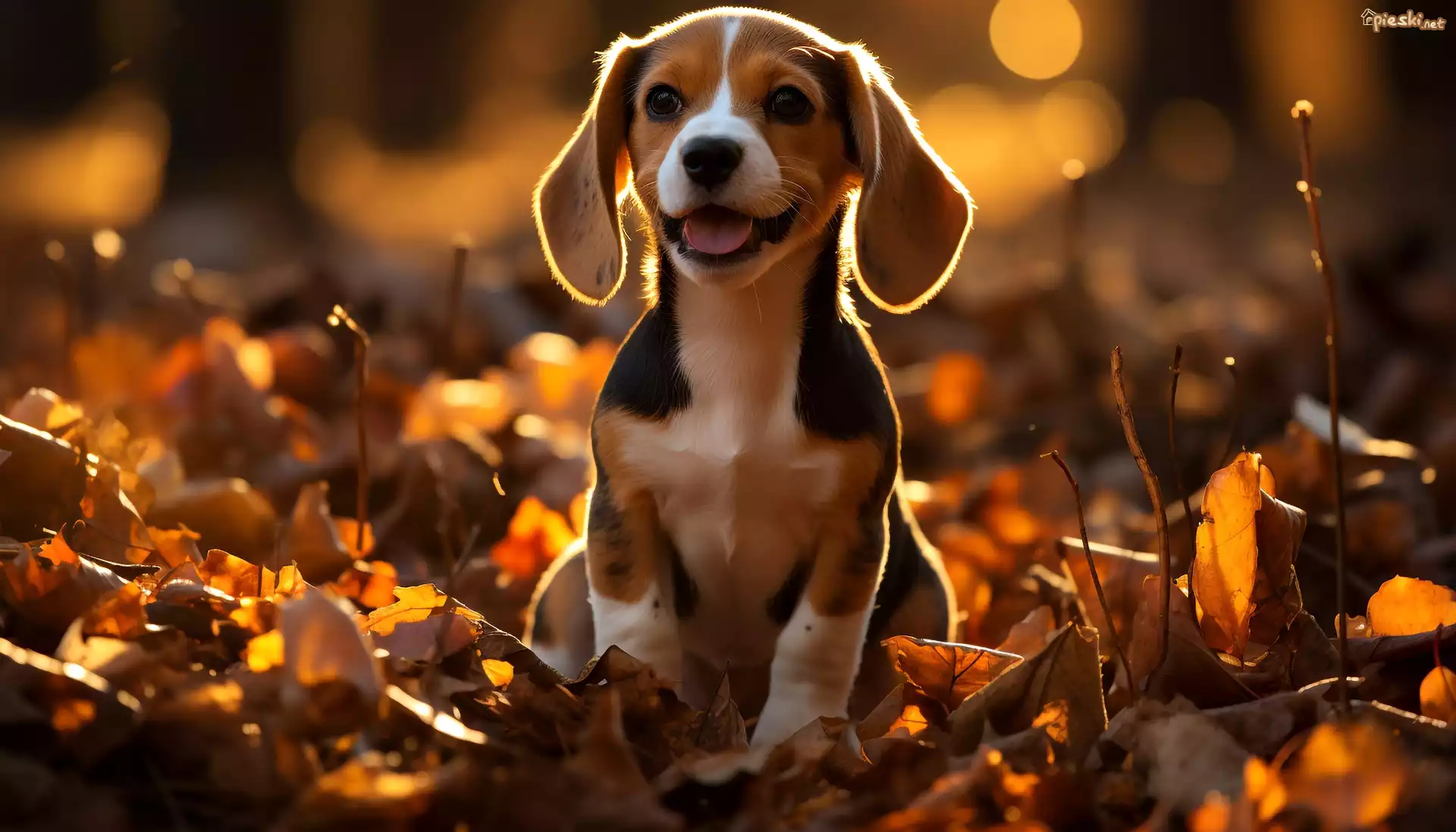 Pies Pies, Beagle, Szczeniak, Liście, Jesień, Grafika AI