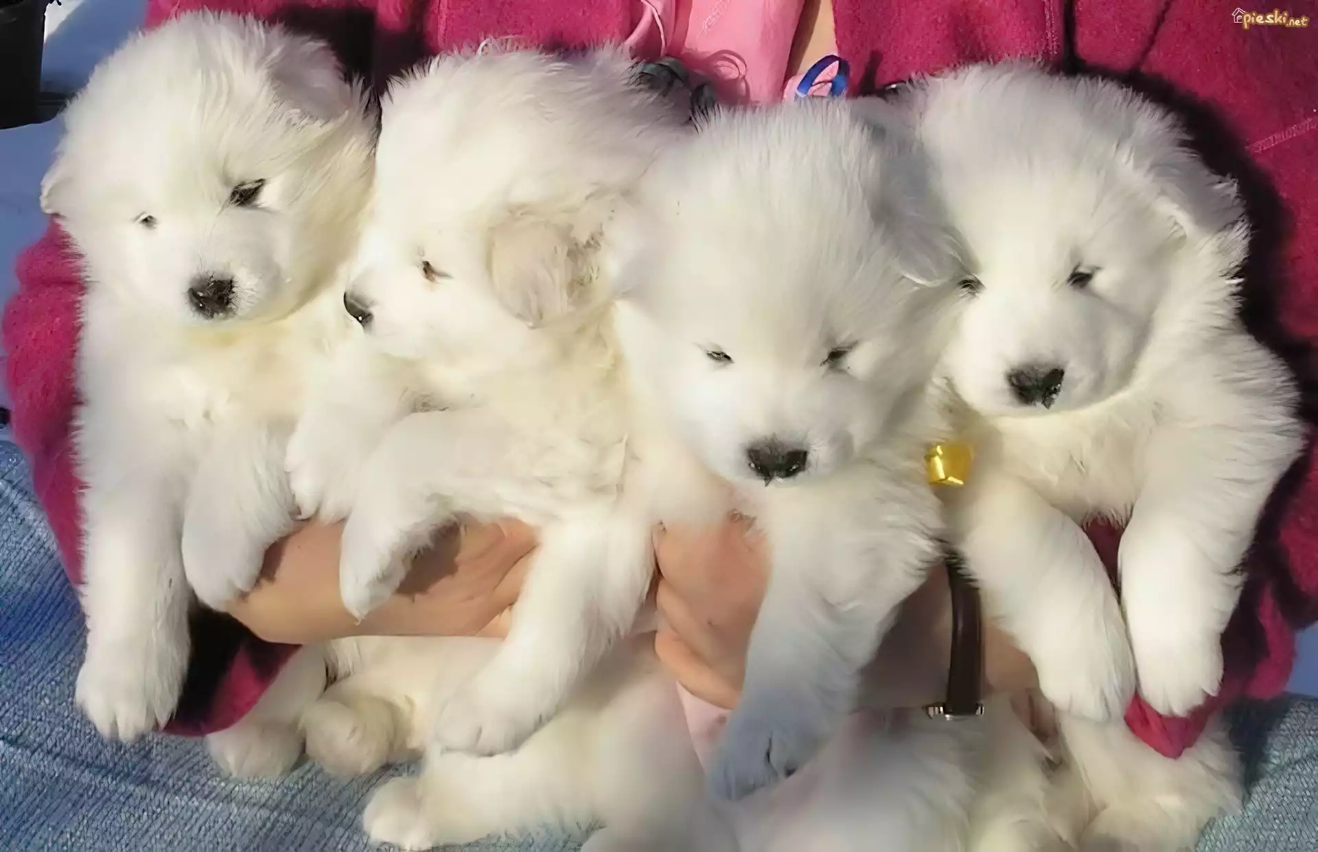 Biały, mały, piesek Biały, Piesek, Samoyed Wiklinowy, Fotel, Szczeniaczek pysk, Samojeda śliczny, Samojed Piesek, Szczeniak, Maści, Brązowej Młody, Leonberger Pies, Róża, Golden retriever, Szczeniak dwa, słodkie, Samojedy Pies, Szczeniak, Samojed, Fioletowy, Kwiat Owczarek australijski - Kelpie, Szczeniak Piesek, Biały, Szczeniak, Liście słodki, szczeniak Samojed, ogrodzenie