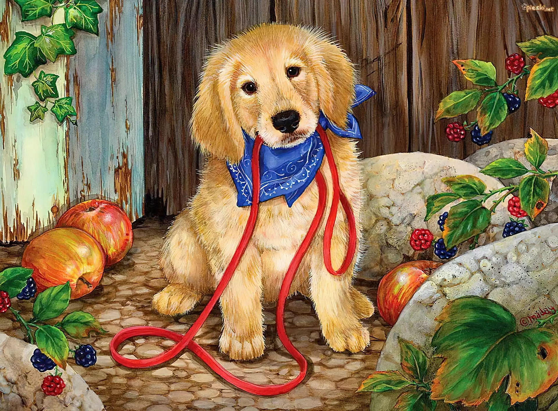 Mały, Pies, Szczeniak, Czerwona, Smycz