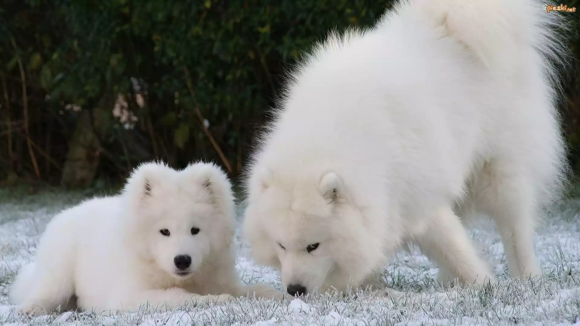 Biały, Pies, Samojed, Śnieg Pies, Szczeniak, Samojed, Fioletowy, Kwiat Samojed, Ogród Biały, Pies, Samojed, Skały młody, Samojed cztery, malutkie, Samojedy Kobieta, Pies, Samojed Cztery, Szczeniaki, Samojedy Morze, Kamienie, Skały, Pies, Samojed biały, Samojed, zielona, trawa Kobieta, Dwa, Psy, Samojedy Pies, Samojed dwa, Samojedy, kostki Biały, Pies, Samojed, Kwiaty, Zbliżenie