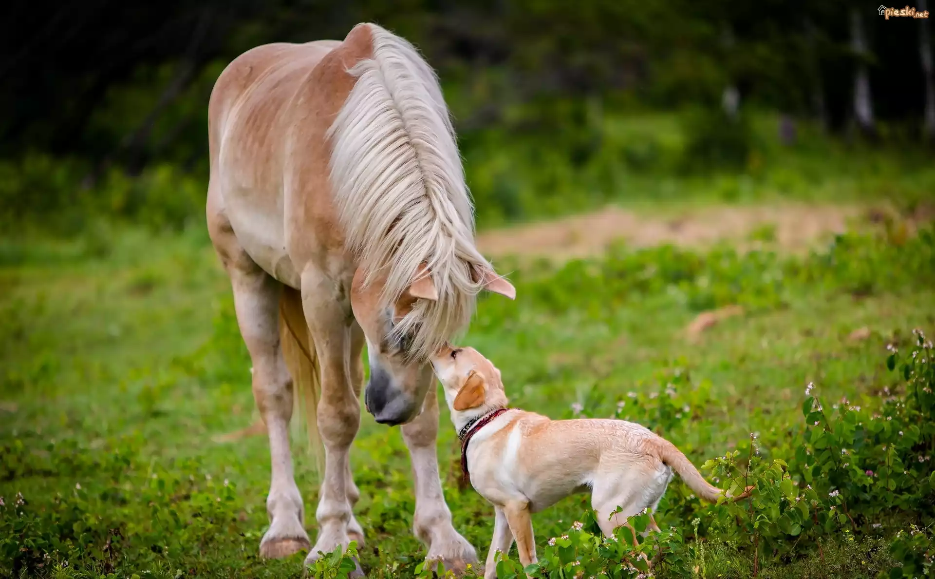 Mały, Piesek, Koń, Przyjaciele, Trawa