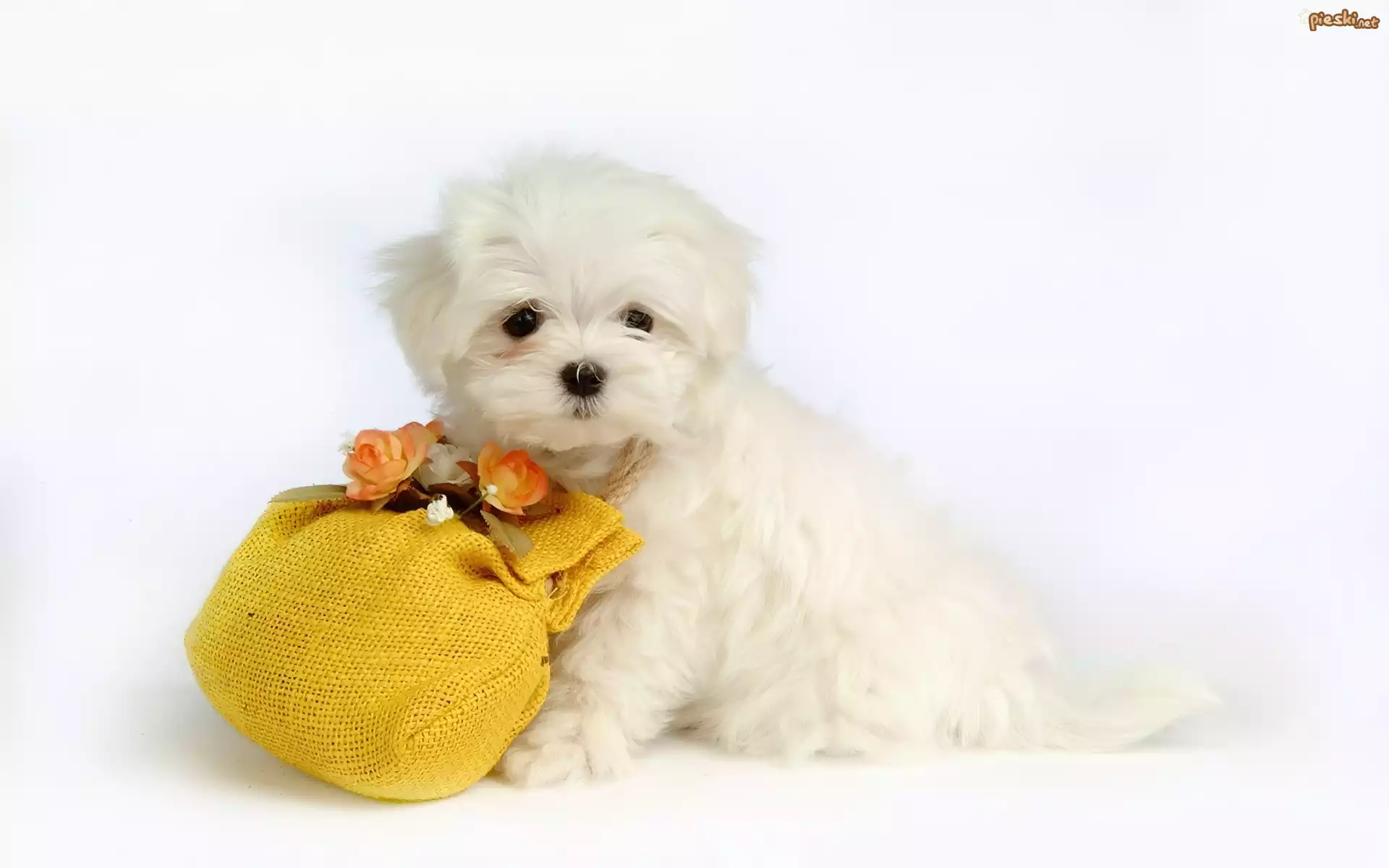 Pies Mały, Biały, Szczeniaczek, Kwiaty