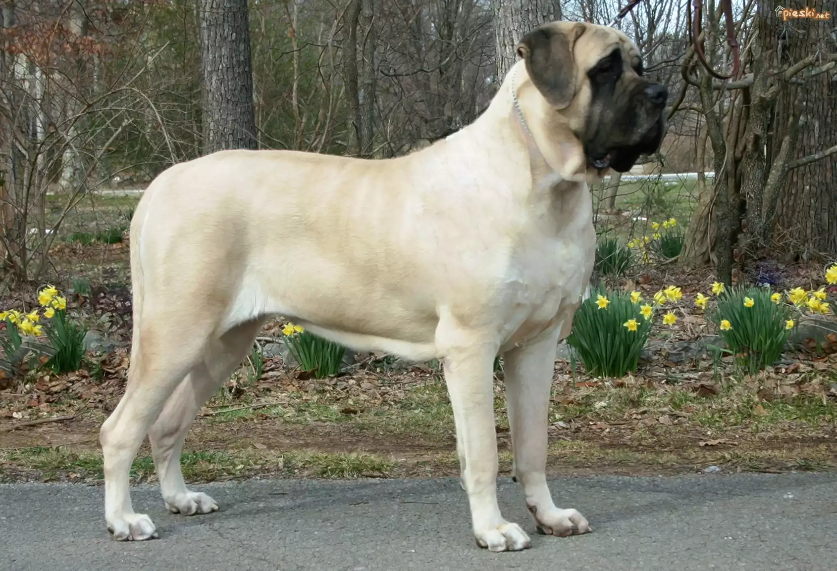 Mastif angielski, Mastiff, żółte, kwiatki