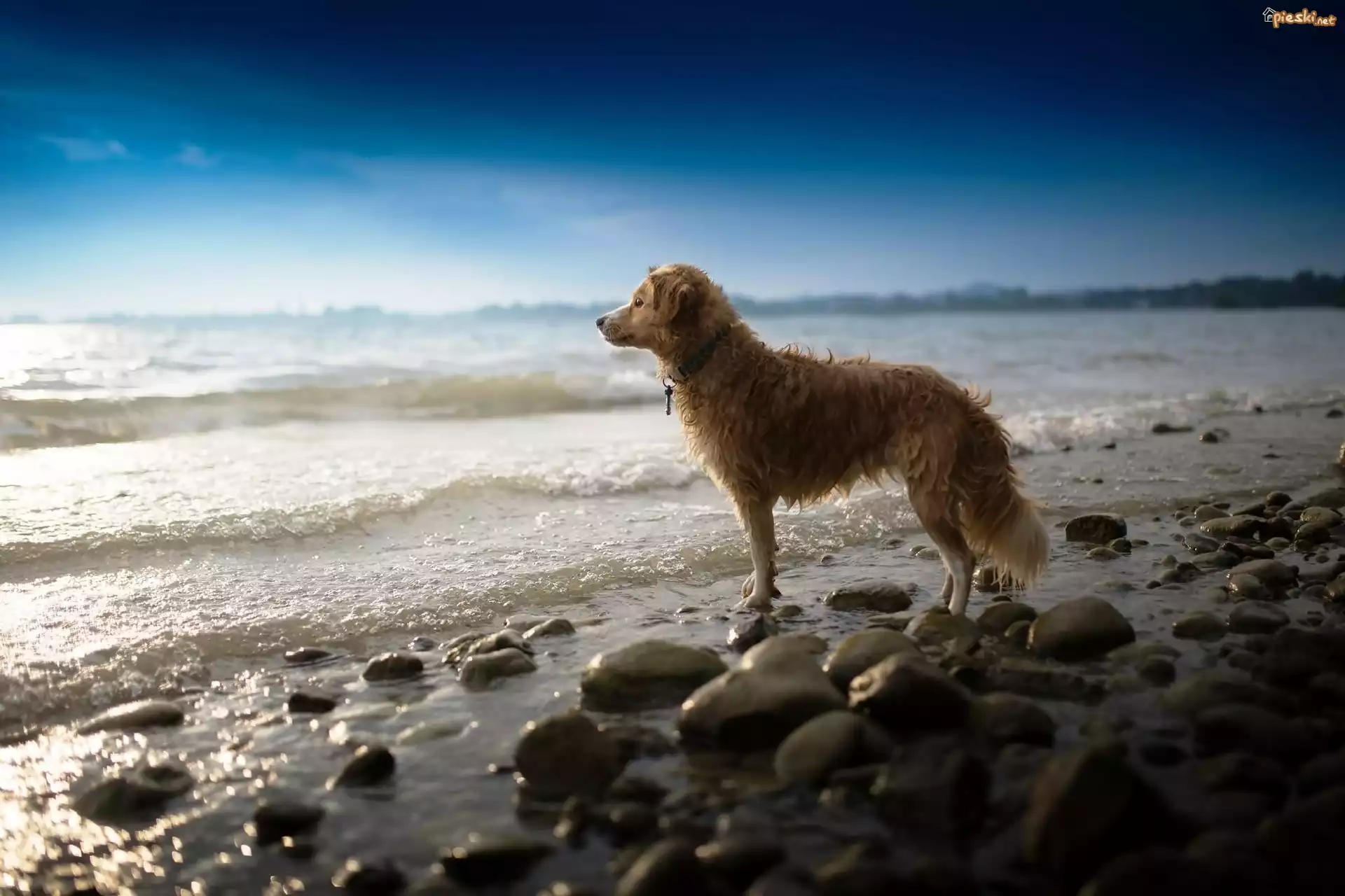 Pies Morze, Kamienie, Fale, Pies, Świt, Oczekiwanie