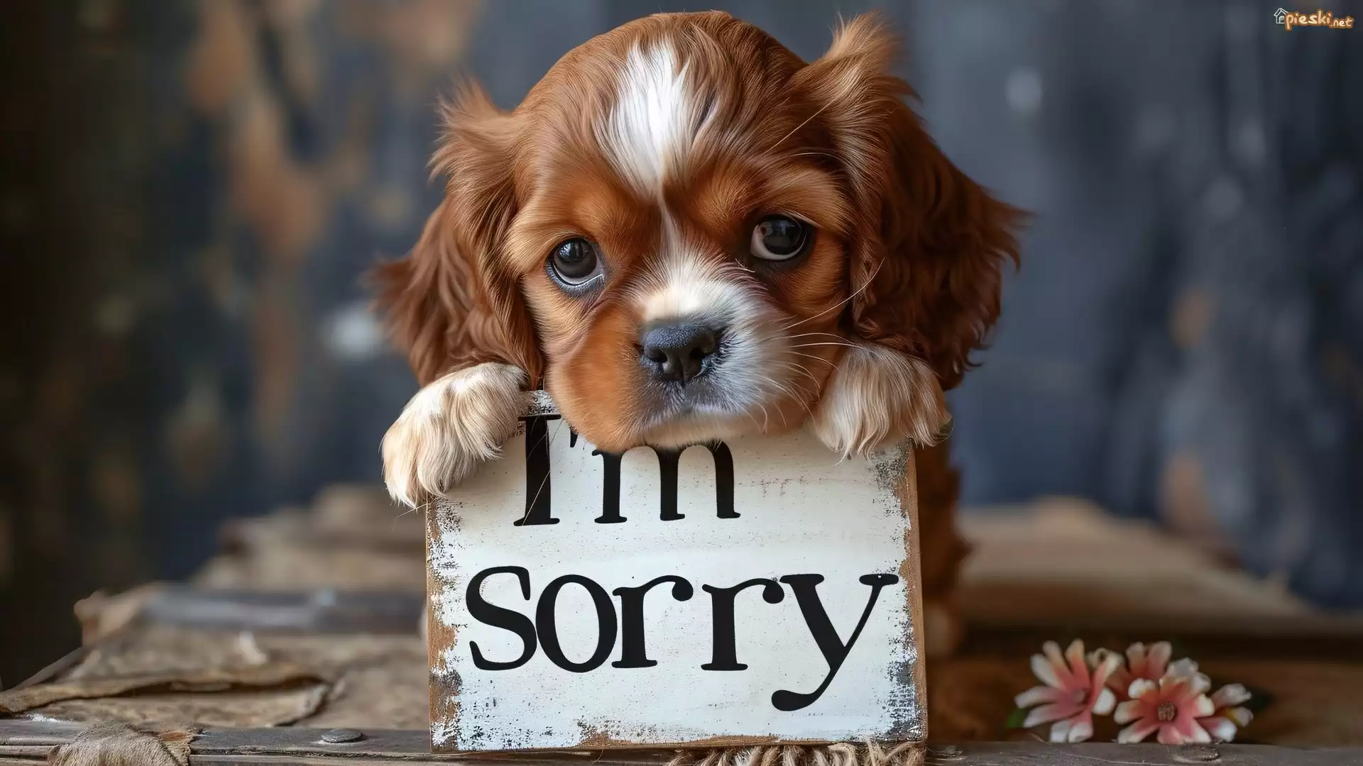 Pies Pies, Szczeniak, Tablica, Napis, Przepraszam, Kwiaty