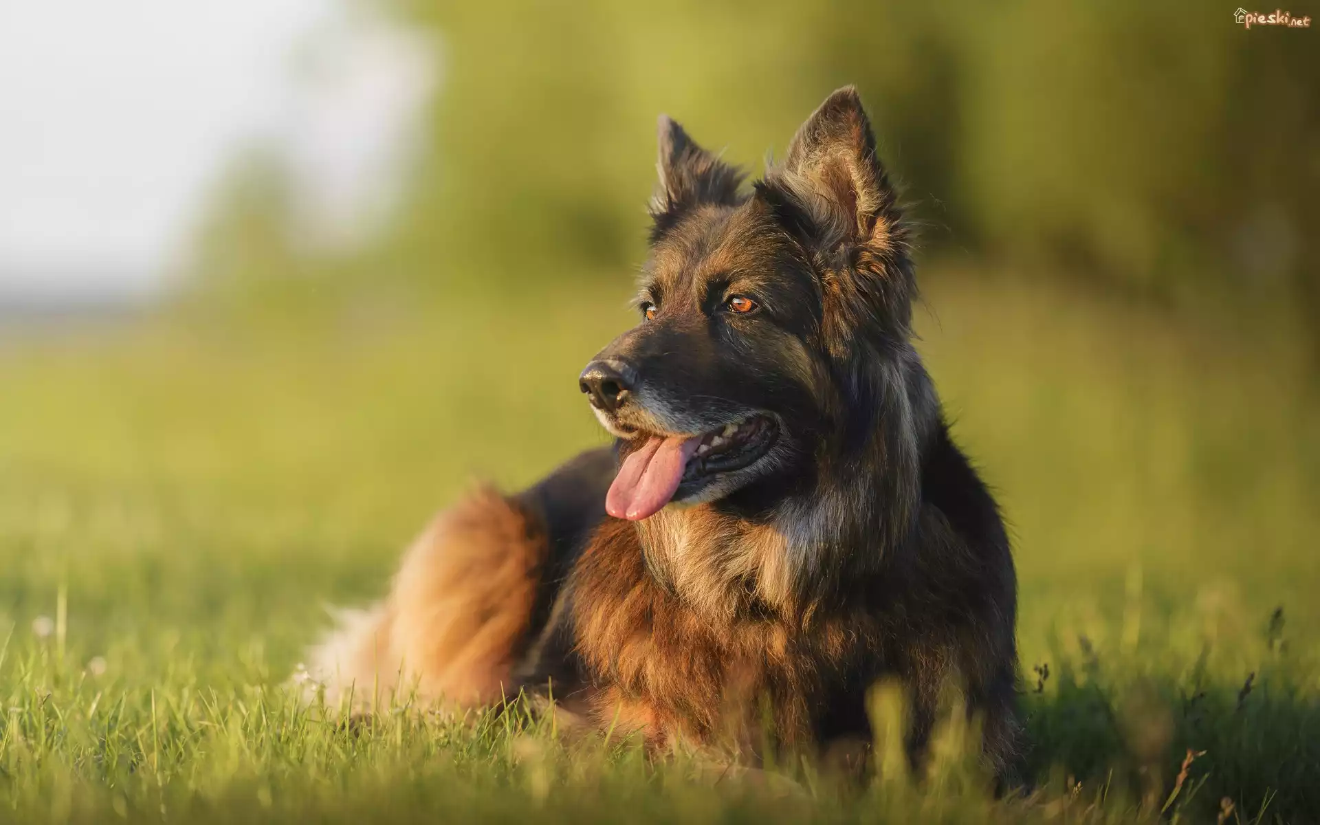 Pies Leżący, Pies, Owczarek niemiecki, Język, Trawa