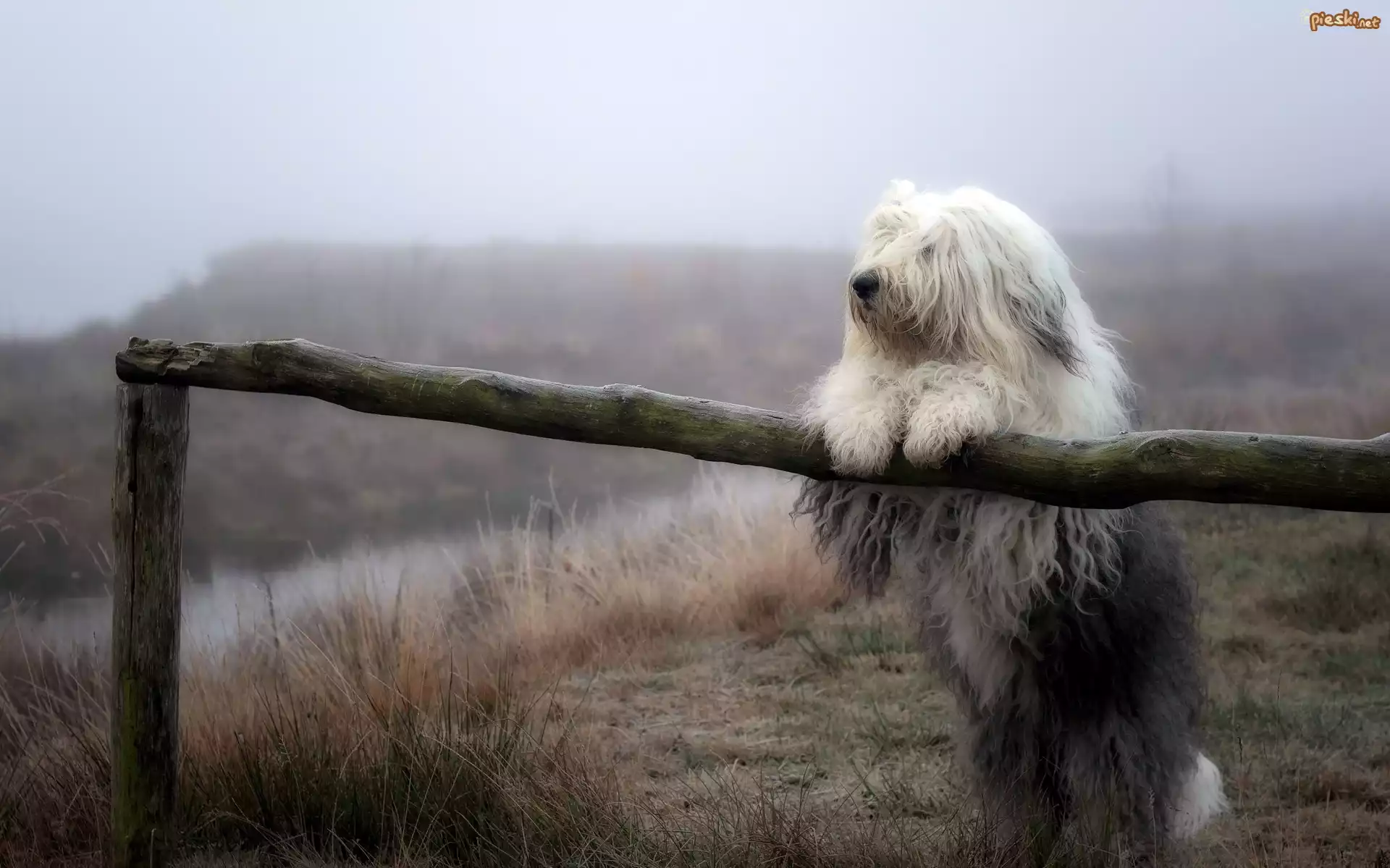 Pies Ogrodzenie, Polana, Mgła, Owczarek staroangielski, Bobtail
