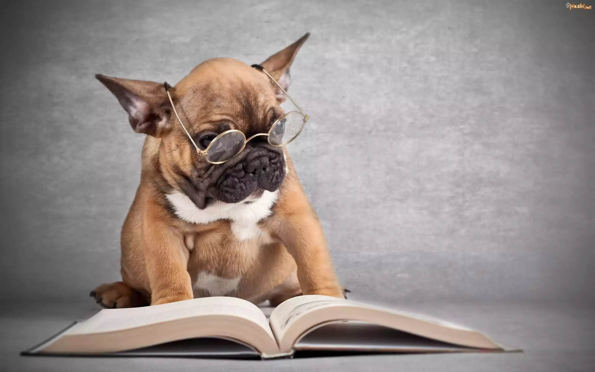 Pies Pies, Okulary, Książka, Buldog francuski