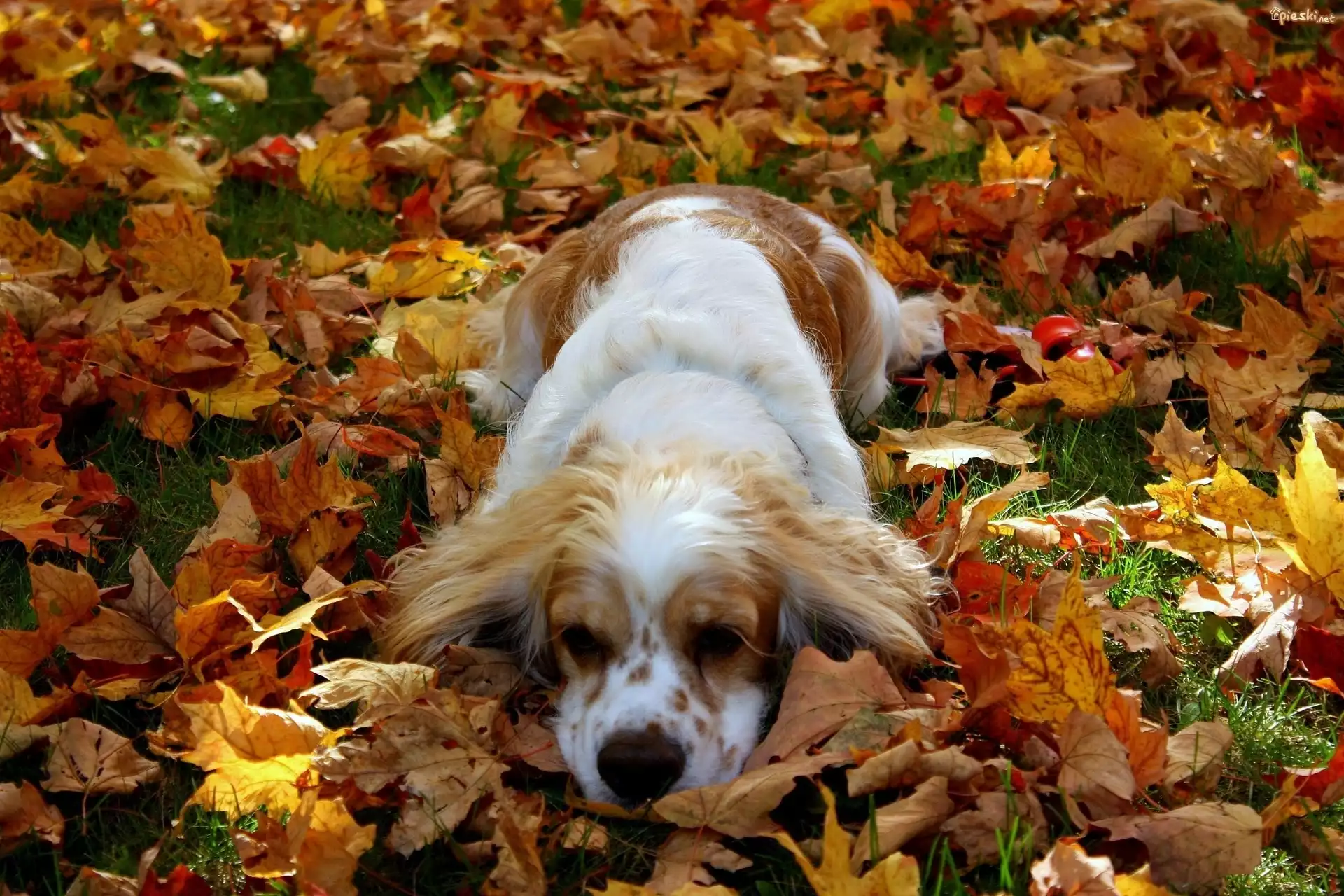 Łaciaty, Pies, Żółte, Liście