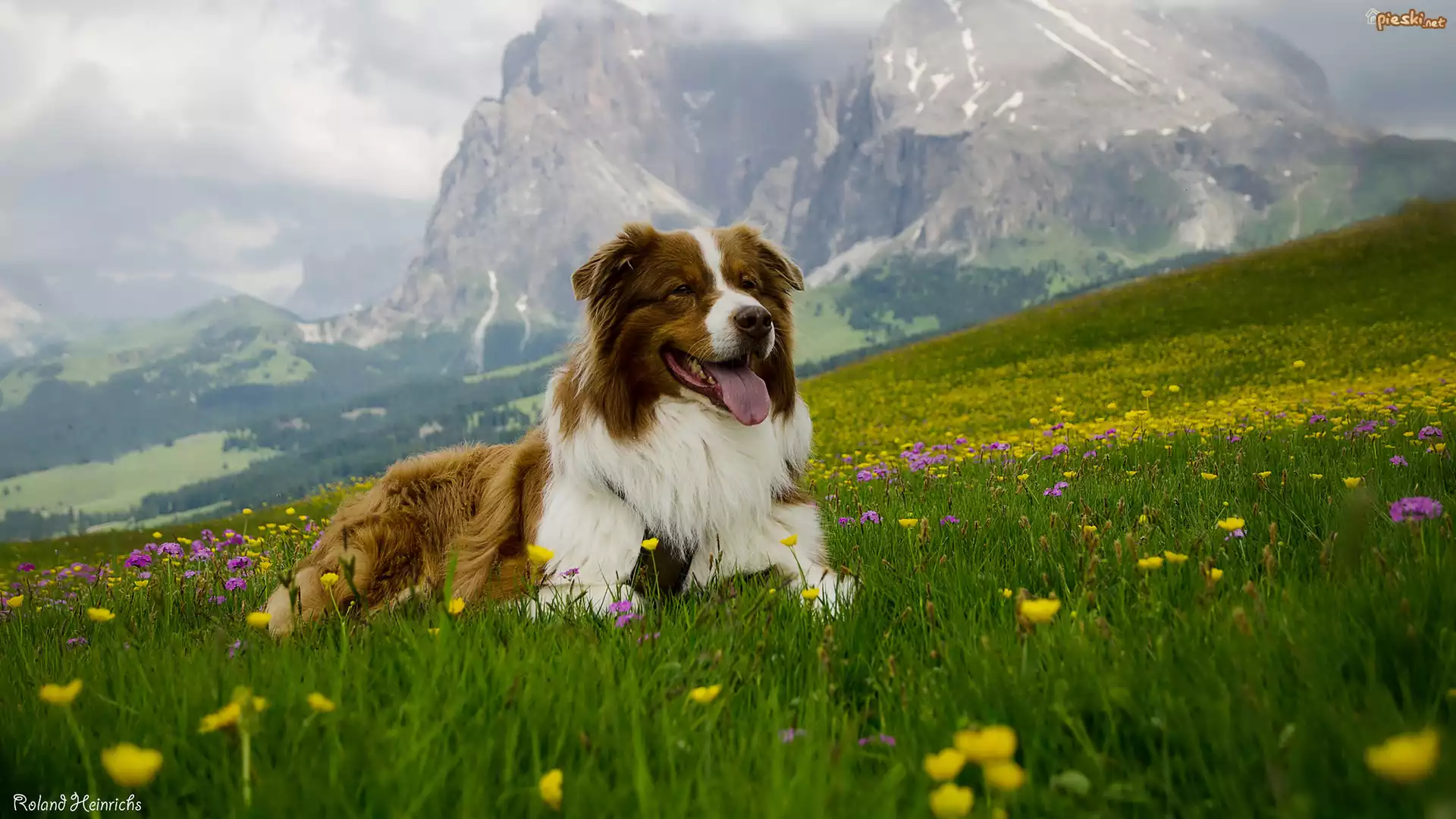 Pies Leżący, Owczarek australijski, Łąka, Góry