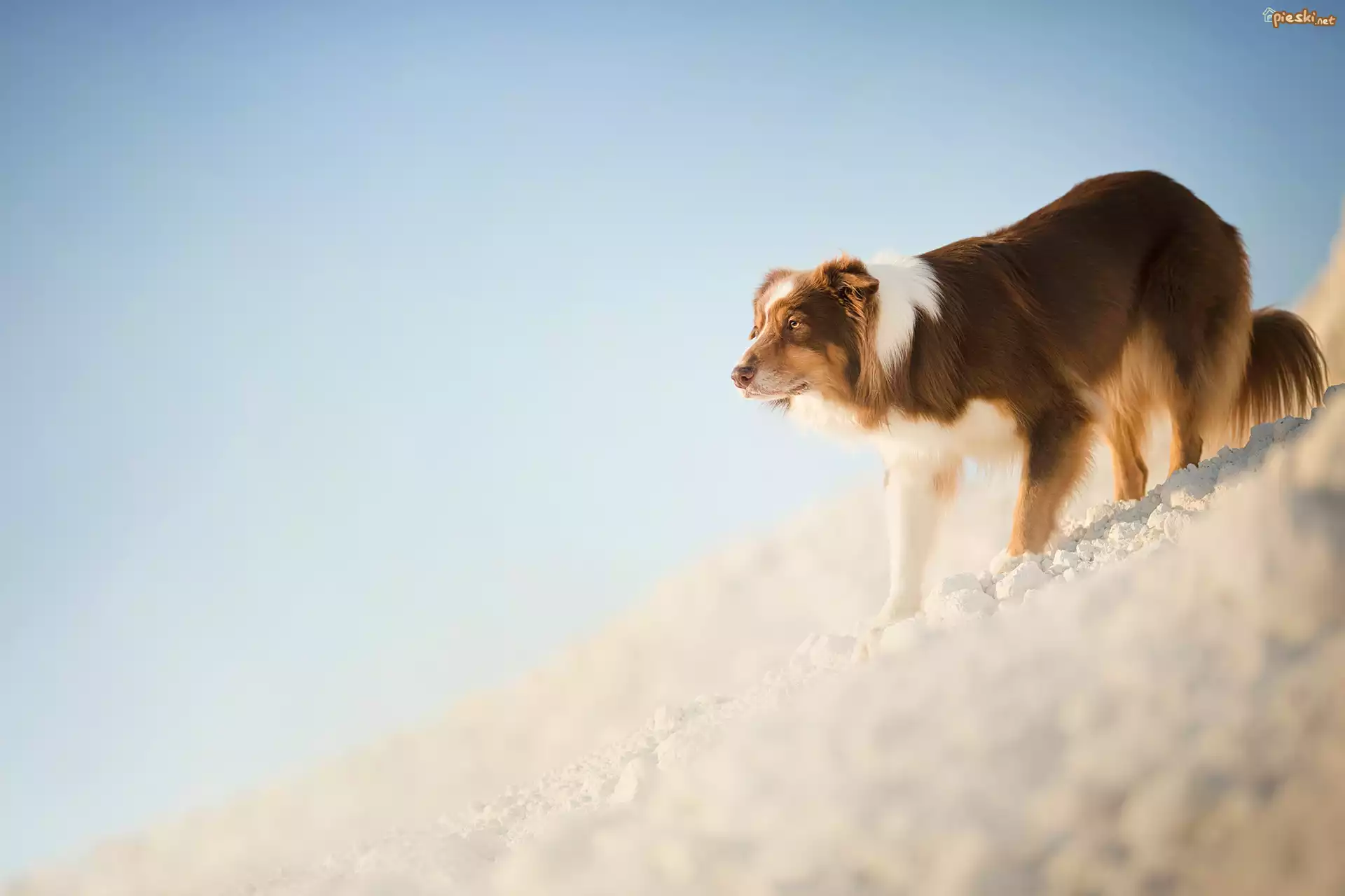 Pies Pies, Owczarek australijski, Zima, Śnieg
