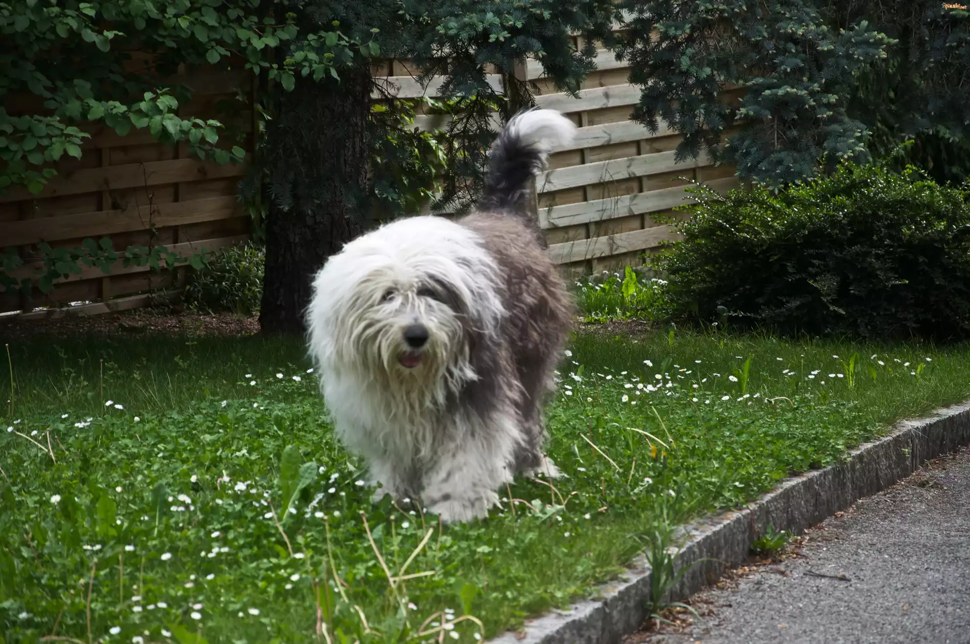 Owczarek staroangielski Bobtail, trawnik