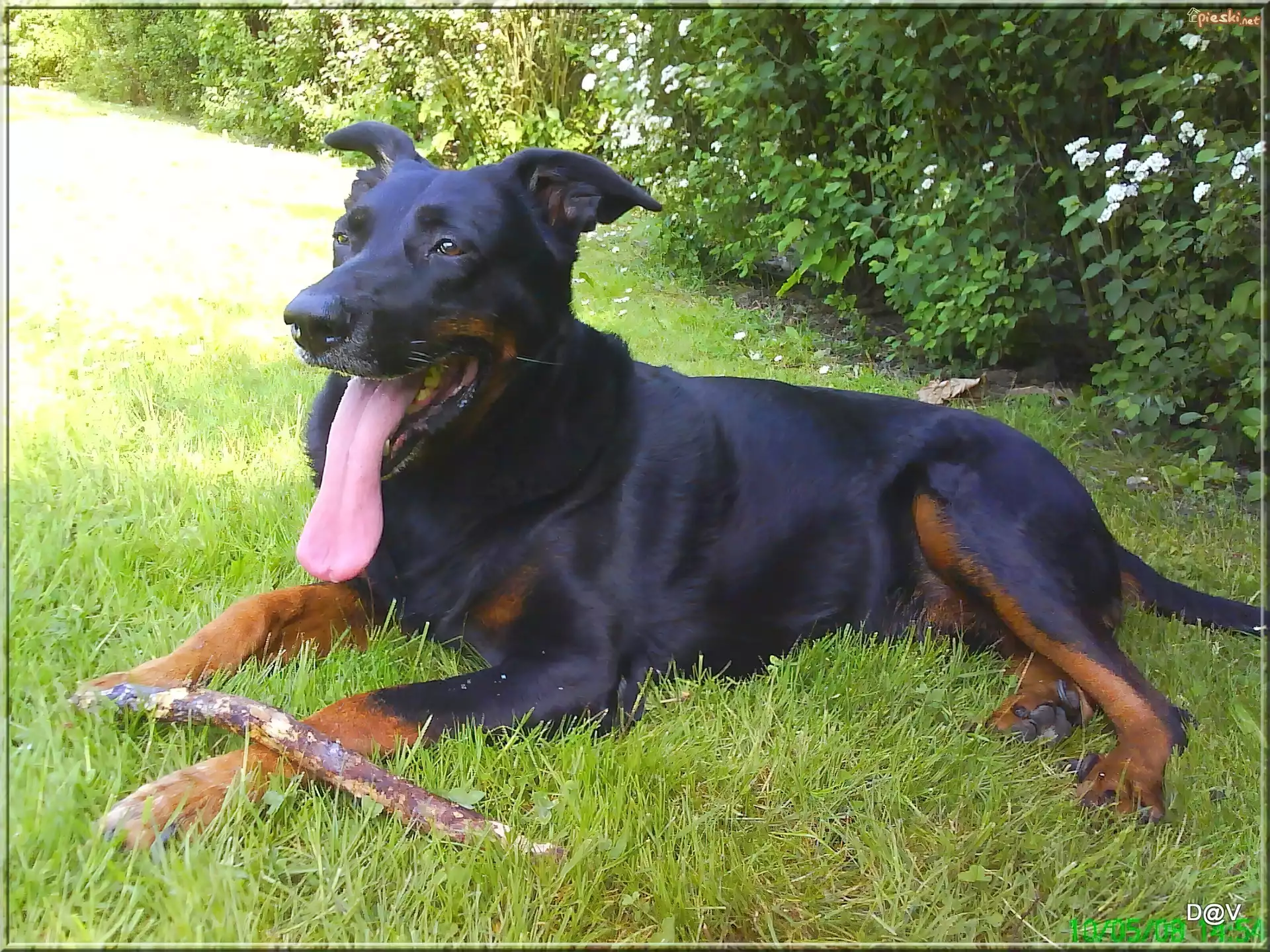 Owczarek francuski Beauceron, jęzor, kij