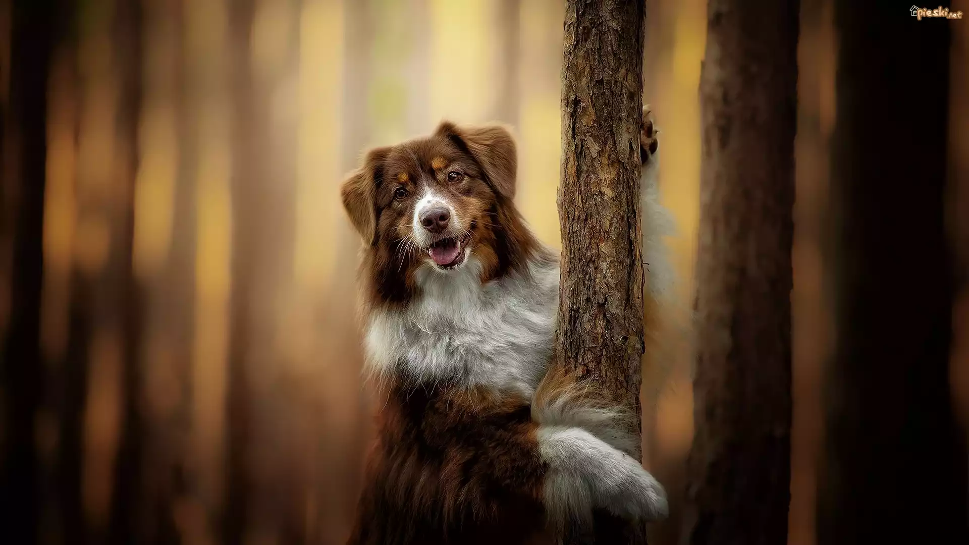 Pies Owczarek australijski, Drzewa, Rozmyte tło