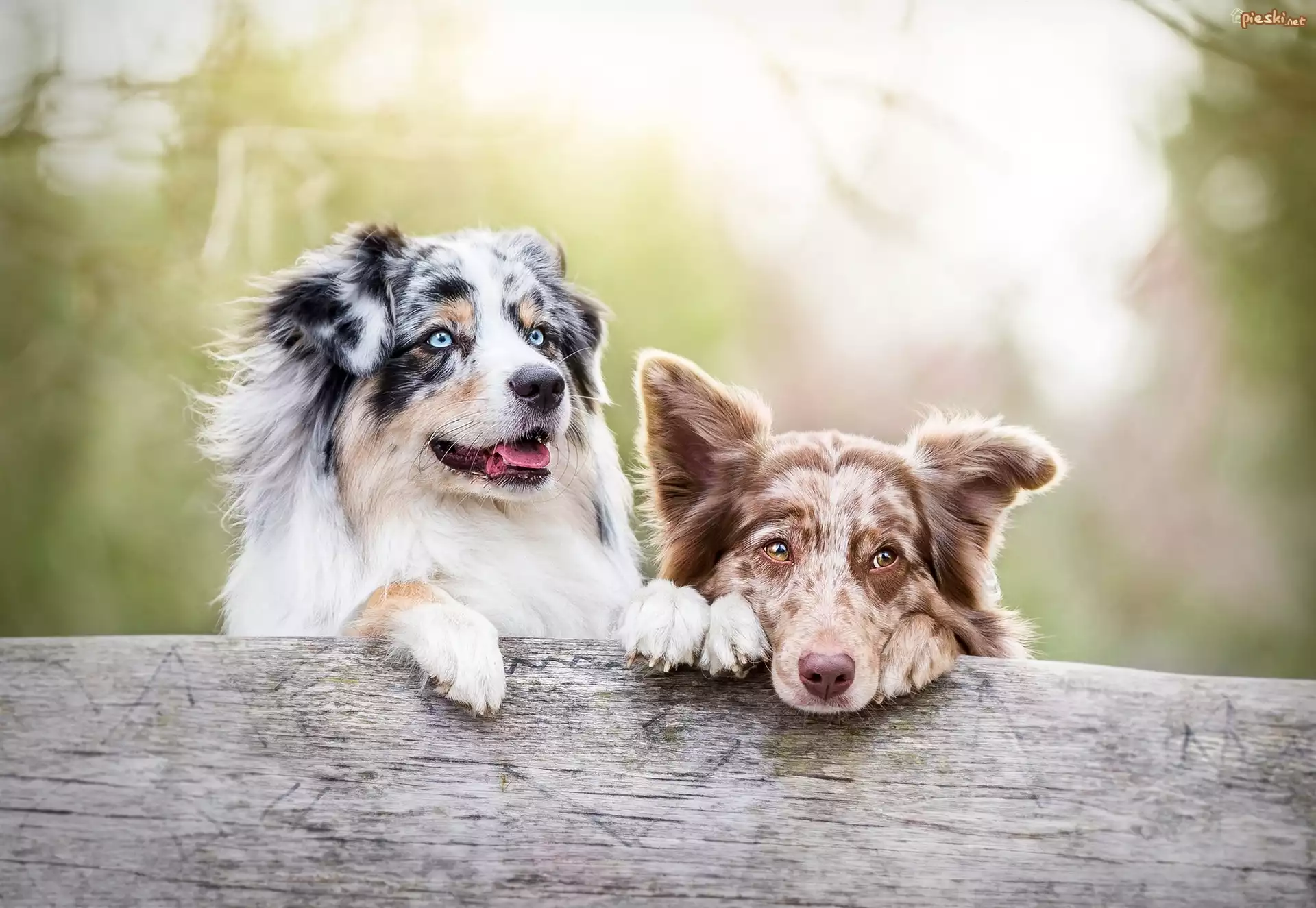 Dwa, Pieski, Łapki, Deska, Owczarek australijski Owczarek australijski, Australian shepherd Dwa, Psy, Most Trzy, Szczeniaki, Owczarki Australijskie, Trawa Owczarek australijski, Australian shepherd, Droga, Tunel Owczarek australijski-australian shepherd, Polana Pies, Owczarek, Australijski